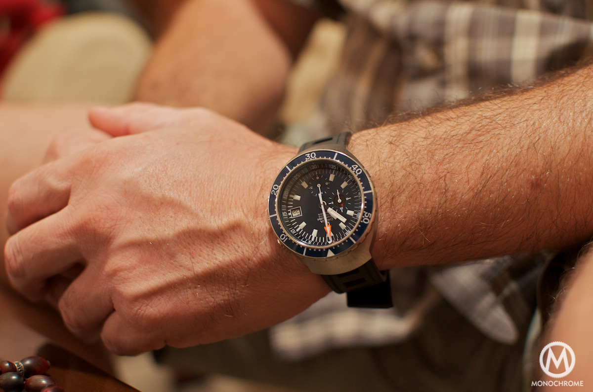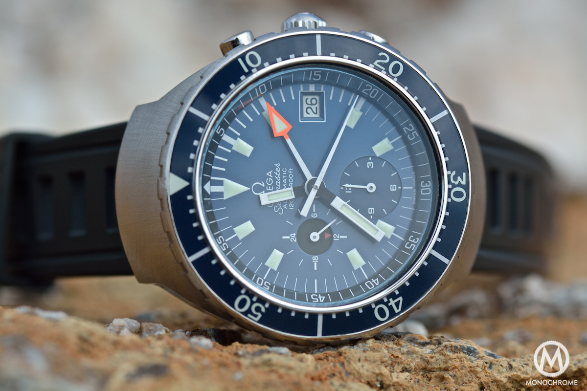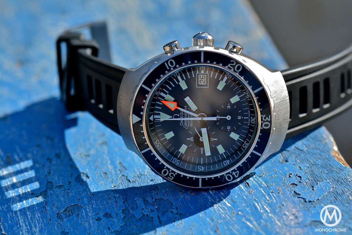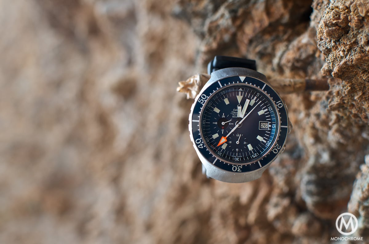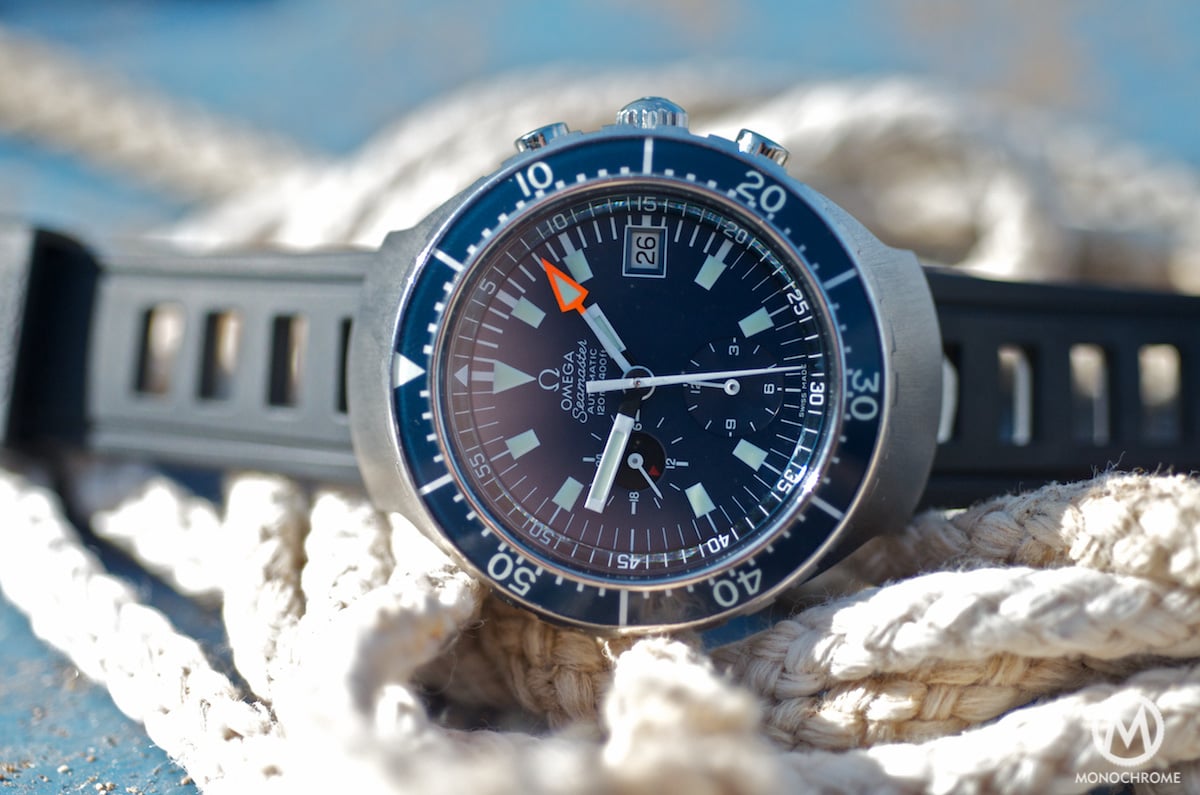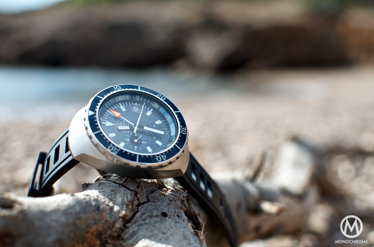 In this article we will examine an instrument that is so important that the life of its operator depends on it. The operator in question is a diver, submerging in a hostile environment either to make a living, or to hunt fish. No, it is not a big dive computer with a huge lcd screen that performs countless calculations per milisecond based on complex algorithms. This is Monochrome, so we are going to investigate a very unique instrument which is strictly mechanical: a watch. A diver’s chronograph watch to be more precise – the Omega Seamaster Automatic 120m Chronograph a.k.a. Big Blue.