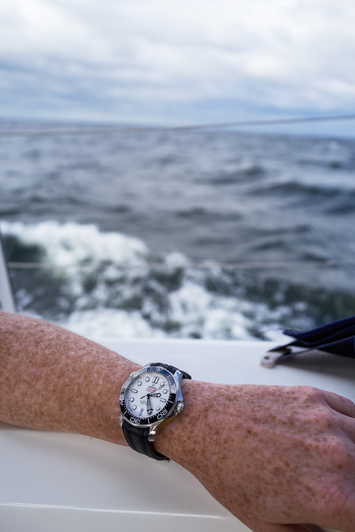 I had the opportunity to take the Seamaster Diver 300M sailing and diving, thus trying it out in all conditions sea-related. The first day we took it out in the Gulf of Mexico for a day on the water. The white dial of the Seamaster gives it a head start here, in that it already looks substantially more nautical-themed than its blue and black counterparts within the collection. There are no real timing-intensive tasks involved in recreational sailing, so the wristwatch is only used for what 99% of people want them for anyway: telling time and looking cool. And the Seamaster is indeed a master of both of those things.