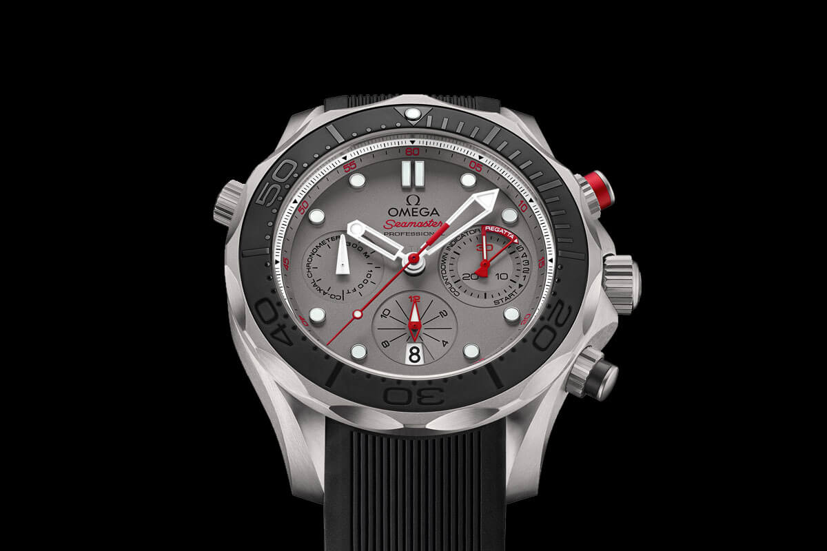 This new Omega Seamaster Diver 300m ETNZ special edition can be called a Yachting / Regatta watch because of its specific chronograph function. Let us explain what such a watch is. In the world of yachting races, navigators have to aligned on the starting line – like in every race. However, a boat is not static and the starting line has to be crossed at a certain moment. To help navigators, the organization teams of such races are launching a 5-minute countdown before the start to help the boats to align on the starting line. Aware of such a countdown, some brands decided to create Regatta watches. Two types can be found: