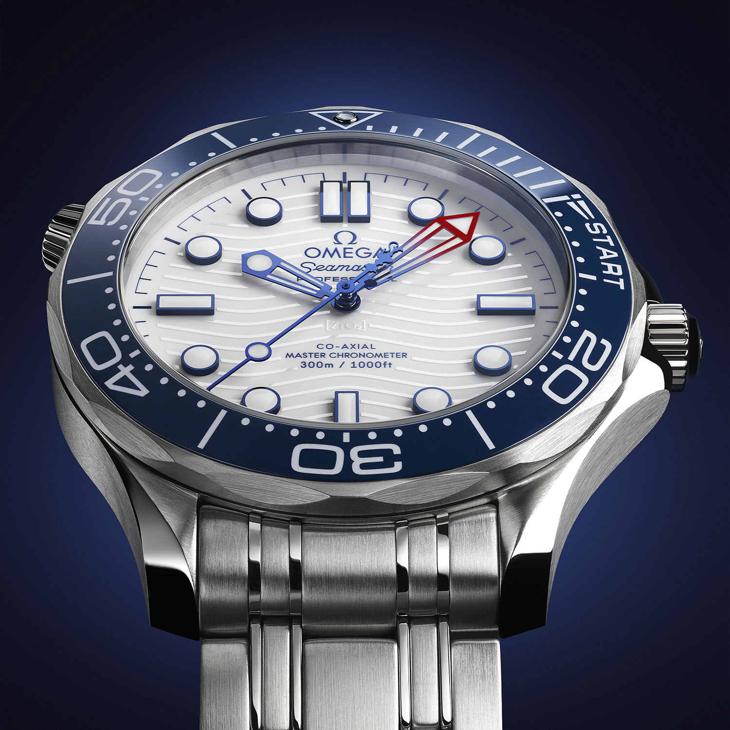 Worn on a classic Diver 300M blue integrated rubber strap with brushed bands and Omega’s patented Quick-Change system, the Omega Seamaster Regatta (ref. 216.92.46.79.10.001) is released as part of the permanent collection and will retail for CHF 6,500 (excl. taxes). For more details, please consult omegawatches.com.