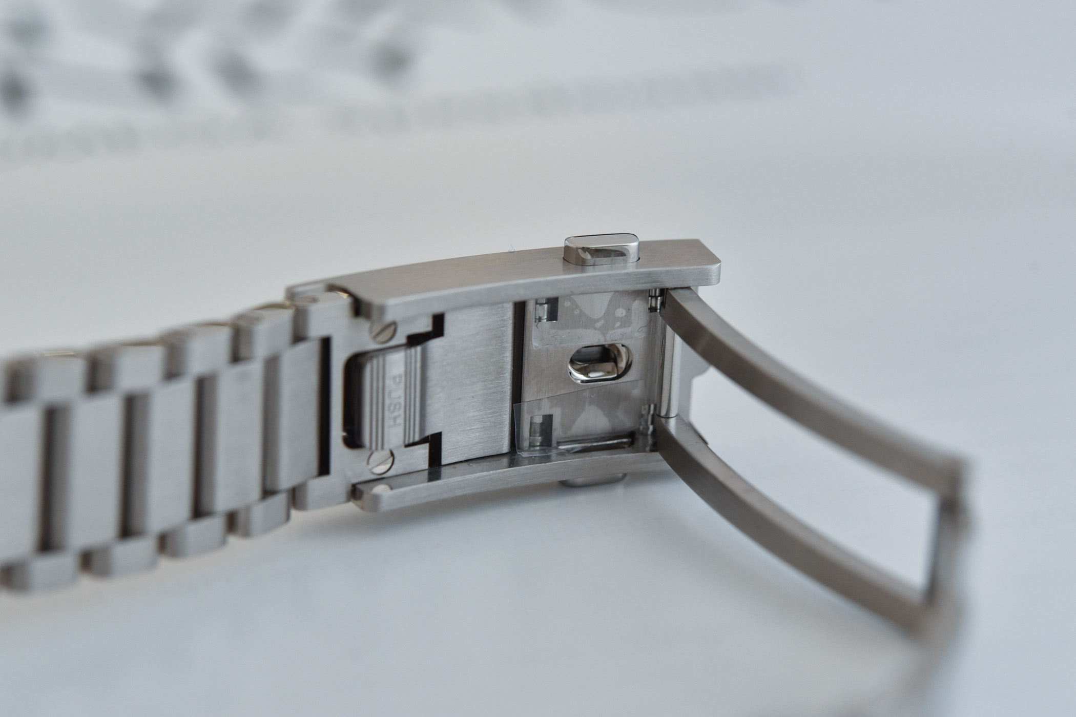 What’s new in this watch is the presence of a clasp that combines vintage look and modernity. Compared to the 105.003 re-edition, it now comes with a micro-adjustment device, also known as “comfort release”. It allows extending the length of the bracelet by a bit over 2mm, something practical during summer. On the other hand, it also means a clasp that is slightly thicker and longer. But nothing worrisome here.