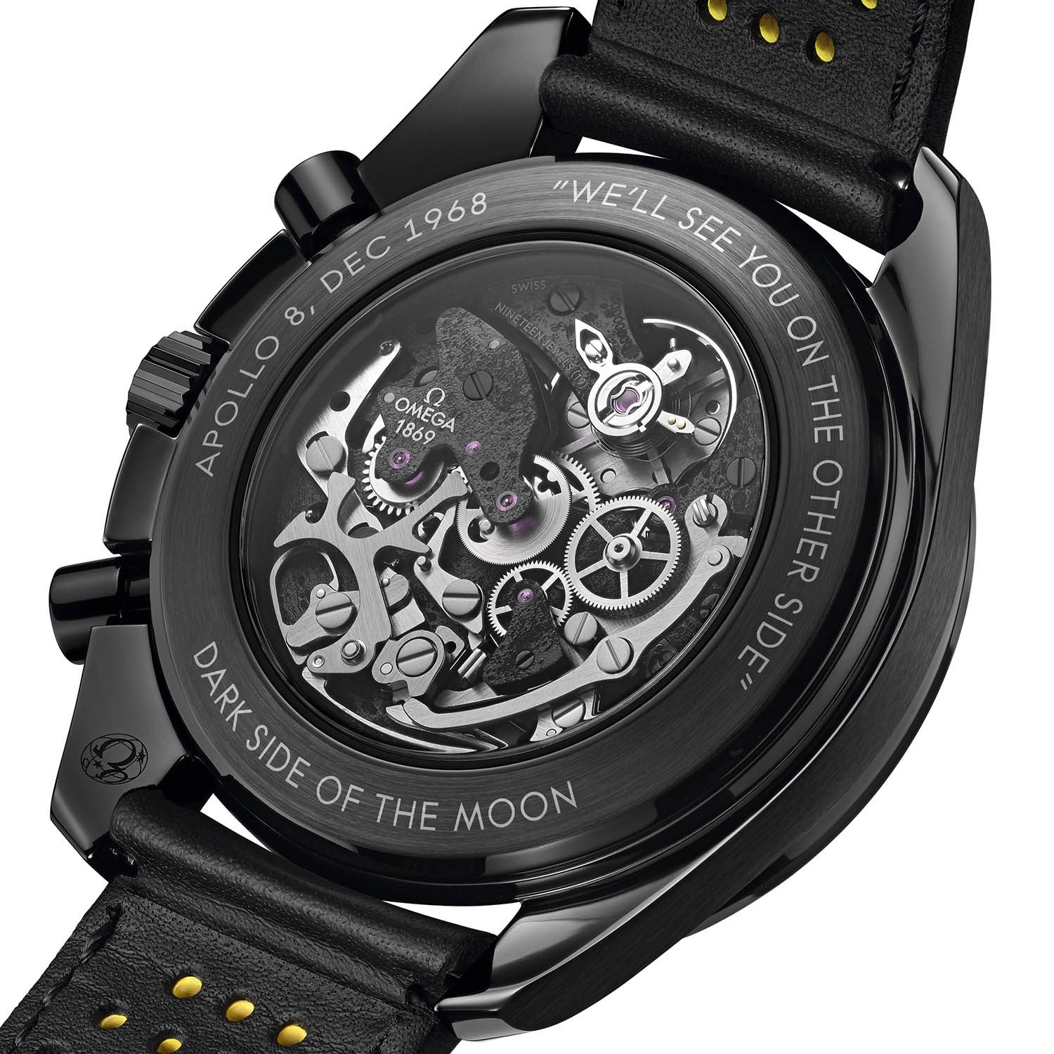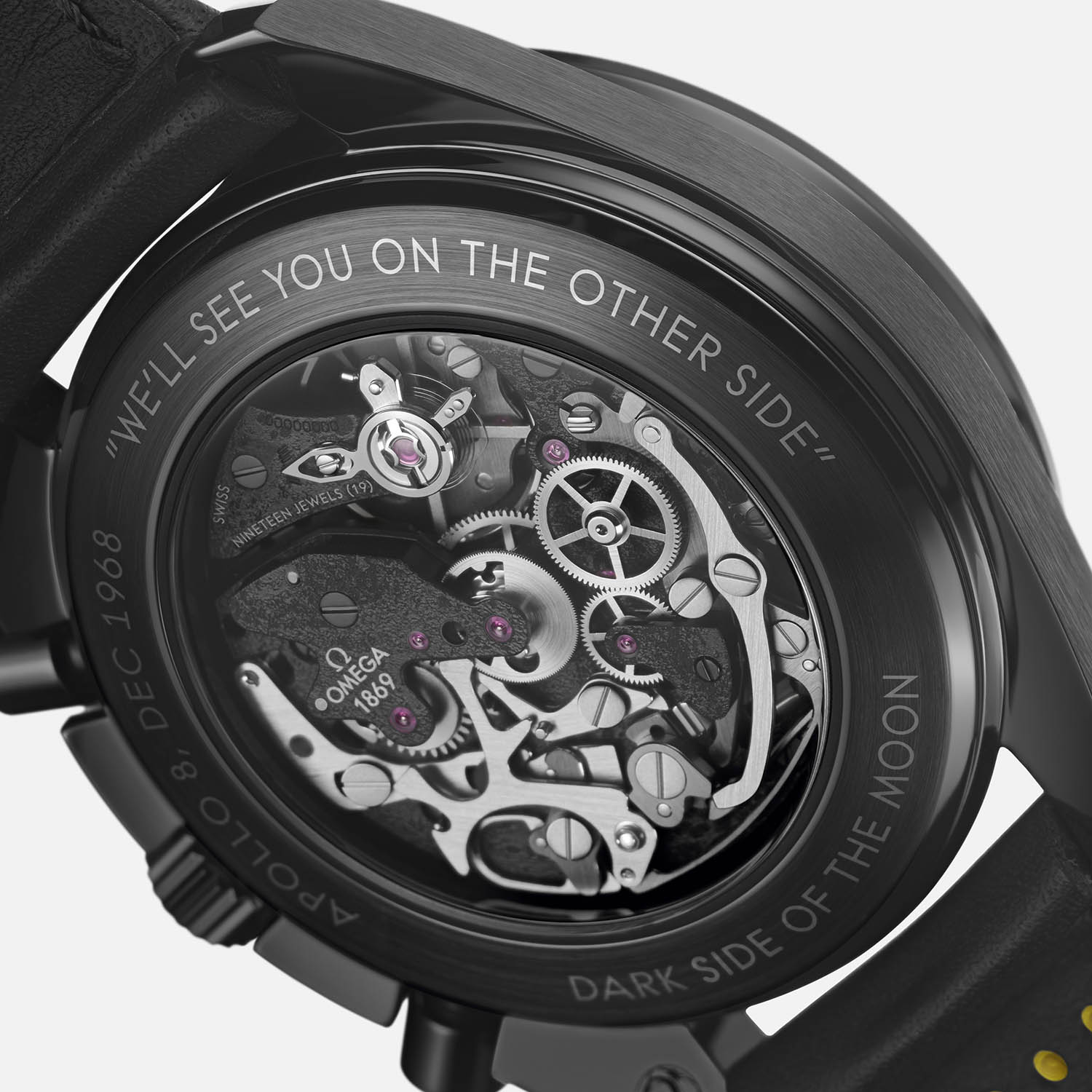 The case back, also in black ceramic, is engraved with “WE’LL SEE YOU ON THE OTHER SIDE” – words said by Command Module Pilot Jim Lovell on board the Apollo 8 mission at the start of the crew’s pioneering orbit to the dark side of the moon.