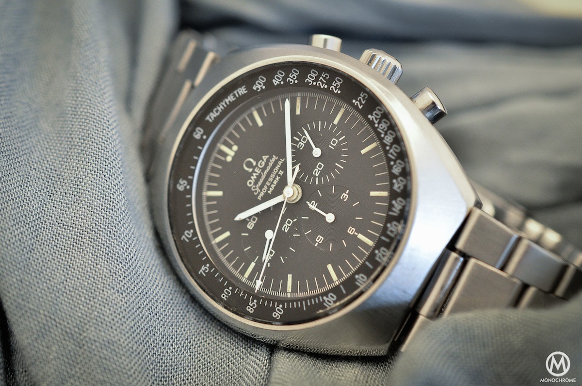 In order to absorb the Alaska Project R&D costs, in 1969 Omega introduced the first of the Speedmaster Mark Series, the Mark II ref. 145.014 (followed by the Mark III, which used Omega’s first automatic chronograph movement; and the Mark IV and the Mark V – the latter was only available in Germany and also known as the Speedmaster ‘Teutonic’).