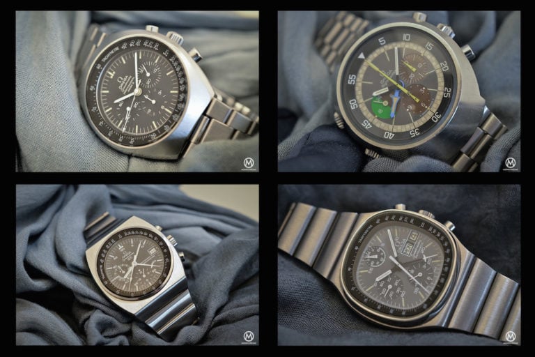 What is the (original) Omega Speedmaster Mark II? At the end of the 1960s (in 1967 to be precise), Omega decided to redefine the Speedmaster and to improve its resistance to extreme temperatures. NASA wanted to create the perfect Space Watch. The goal was to create a watch able to function in both extremely hot and extremely cold environments (meaning on the bright and dark sides of the Moon), and also to have a great resistance to all the possible aggressions of a space mission. Thus, within Omega, the Alaska Project was born. One of the axis of research was to redefine the shape of the case. Omega developed a brand-new bulky design for a case made of titanium, a worldwide first in watchmaking. The case was as smooth and unadorned as possible in an effort to prevent anything from snagging on the watch. But after the presentation of the prototypes (a total of 5 were made), NASA decided that the Omega Speedmaster ‘Moonwatch’ 145.012 succeeded in its mission so the Alaska Project was declared obsolete. (you can read more about the Alaska Project and the development of the Omega Speedmaster Mark II in our 2nd part of the History of the Speedmaster).