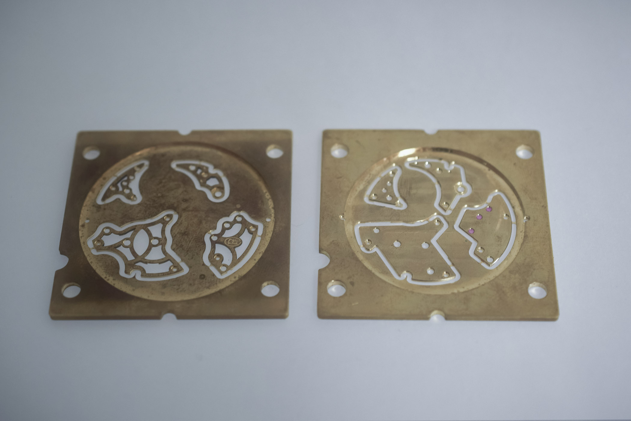 The production of openworked parts begins with the fabrication of the blanks for plates and bridges. Skill and precise calculations are needed to openwork as much as possible of the bridges and plate, without rendering parts too fragile. Traditionally, the skeletonization of the plates and bridges was performed entirely by hand from a non-openworked movement by the hands of a master-engraver. Today, except for a handful of artisans such as Kees Engelbarts (see here) and a few larger manufactures (really a few), parts are produced by CNC machines. Each individual part is modelled with software and machined precisely until it is perfectly shaped.