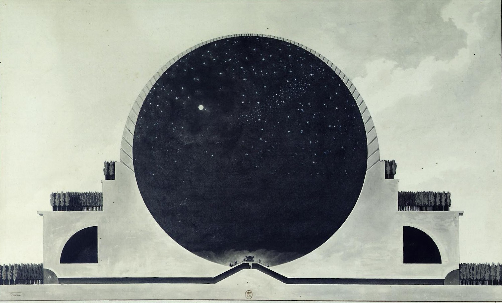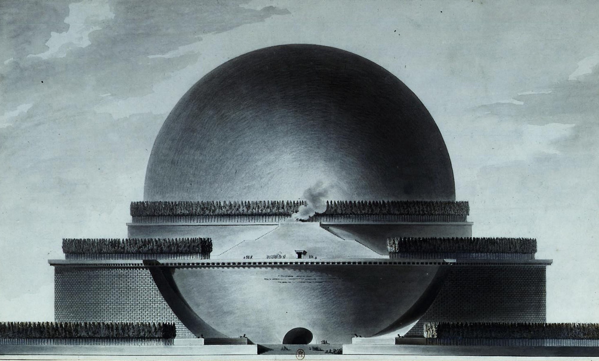 Behind the design of the OPH 411 Vesper are the works of Etienne-Louis Boullée (1728-1799), a visionary French neoclassical architect whose work greatly influenced contemporary architects and modern designers. His work was characterised by the removal of all unnecessary ornamentation, inflating geometric forms to a huge scale and repeating elements such as columns. One of his most important pieces of work was a monument to Isaac Newton, a Cenotaph (a funerary monument), expressed as a 150m tall sphere encompassed by two large barriers circled by hundreds of cypress trees. Though the structure was never built, Boullée had many ink and wash drawings engraved, and the inside showed a small sarcophagus for Newton, placed at the lower pole of the sphere, under a starry sky.