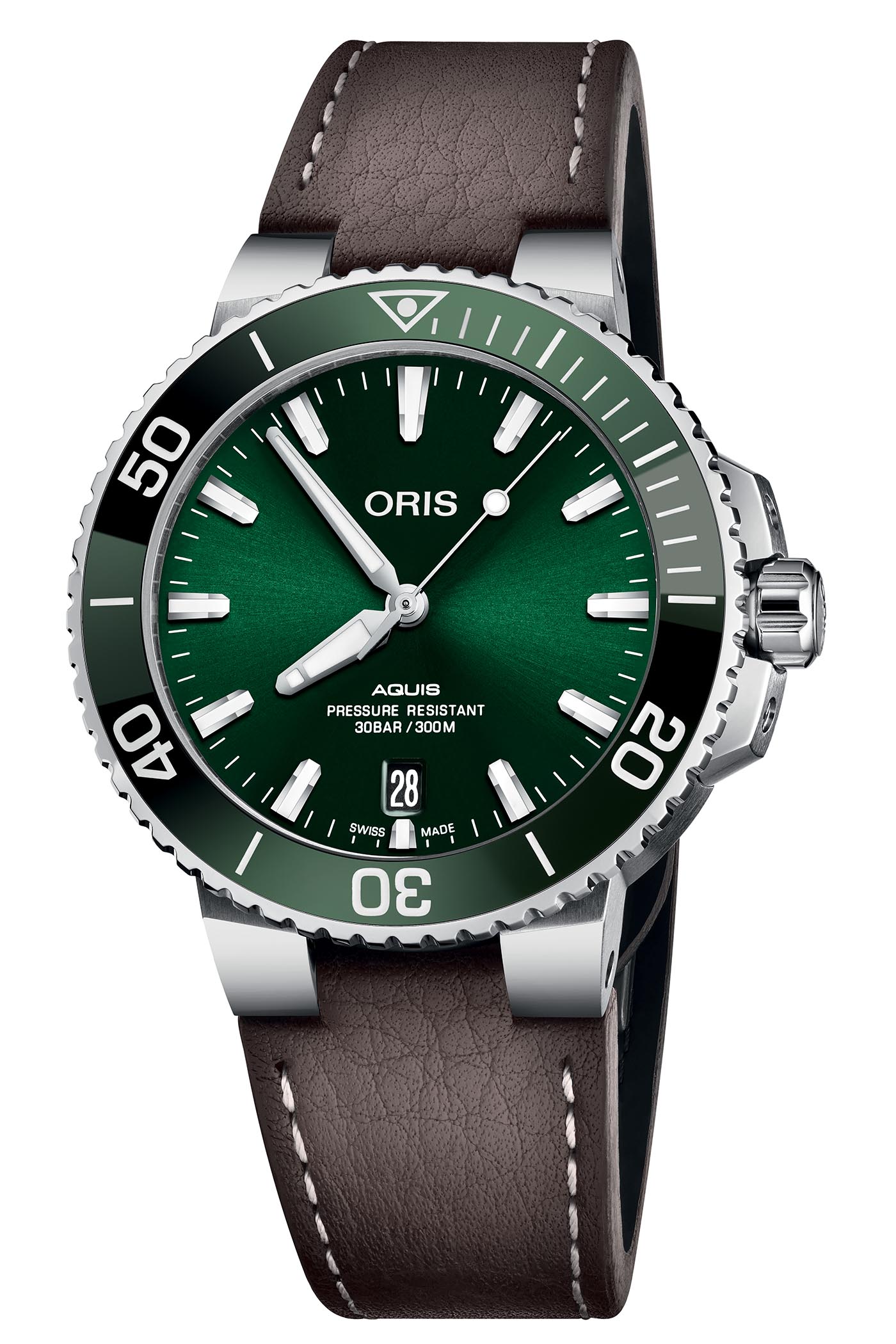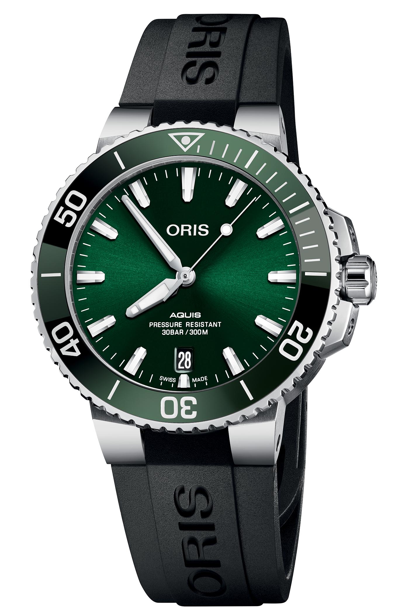 The Oris Aquis Date 39.5mm with Green Dial will be available as of February 2019, at a price of EUR 1,650 (leather or rubber) or EUR 1,850 (steel bracelet). More details at oris.ch.
