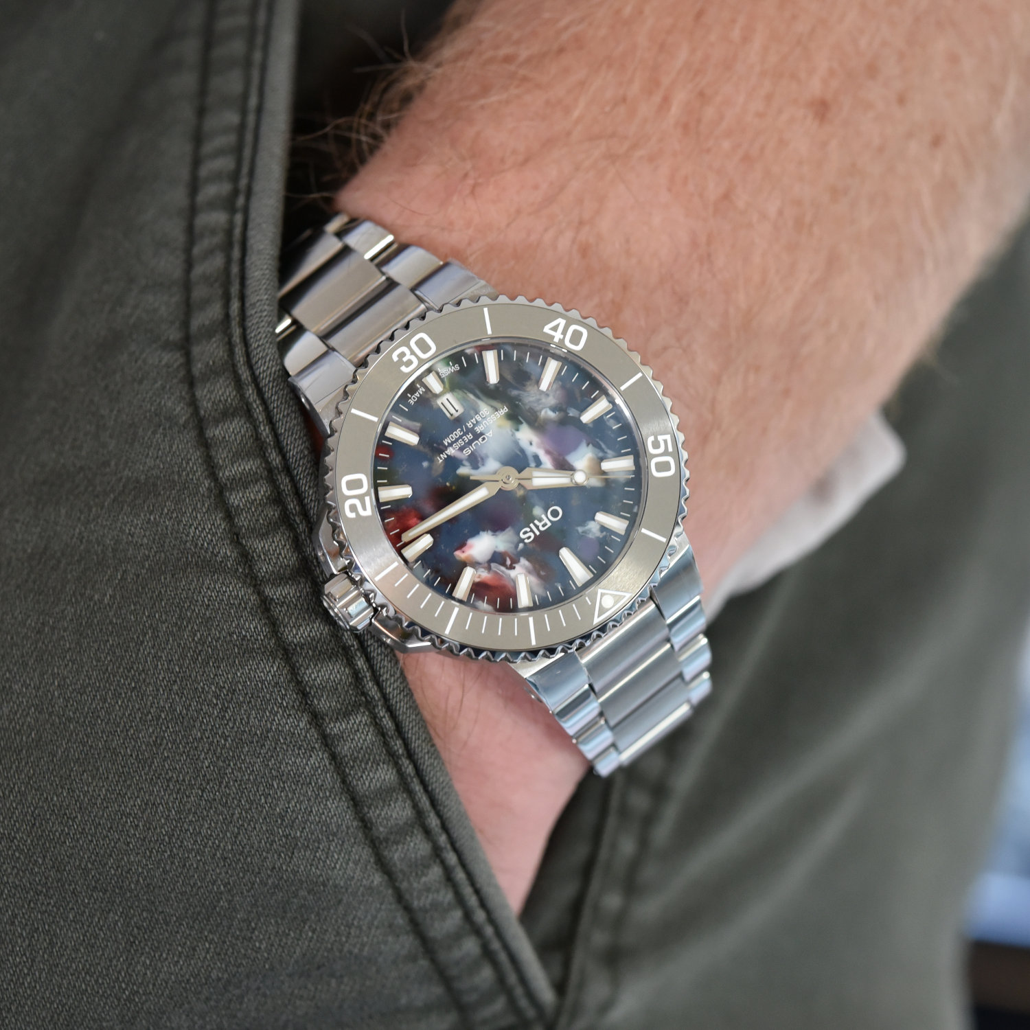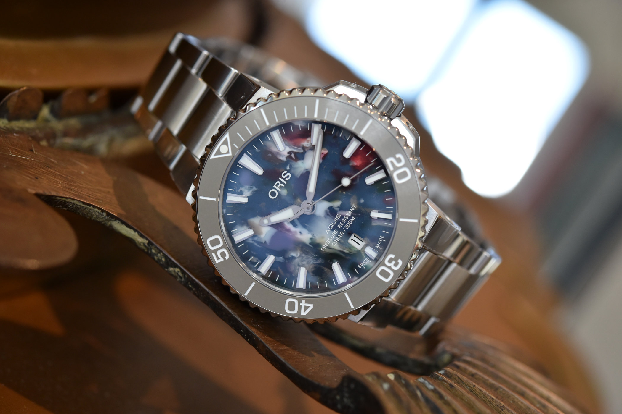 And looking at the Oris Aquis Date Upcycle, in particular, I can honestly say it is an interesting watch that raises awareness on a seriously important issue. And, if we hadn’t made that part clear yet, you get a watch with a distinct look, with each dial being unique in pattern and colours. The price for the Oris Aquis Date Upcycle, which comes on a steel bracelet with Oris’ familiar folding clasp with diving extension, is set at CHF 2,100 regardless of size.