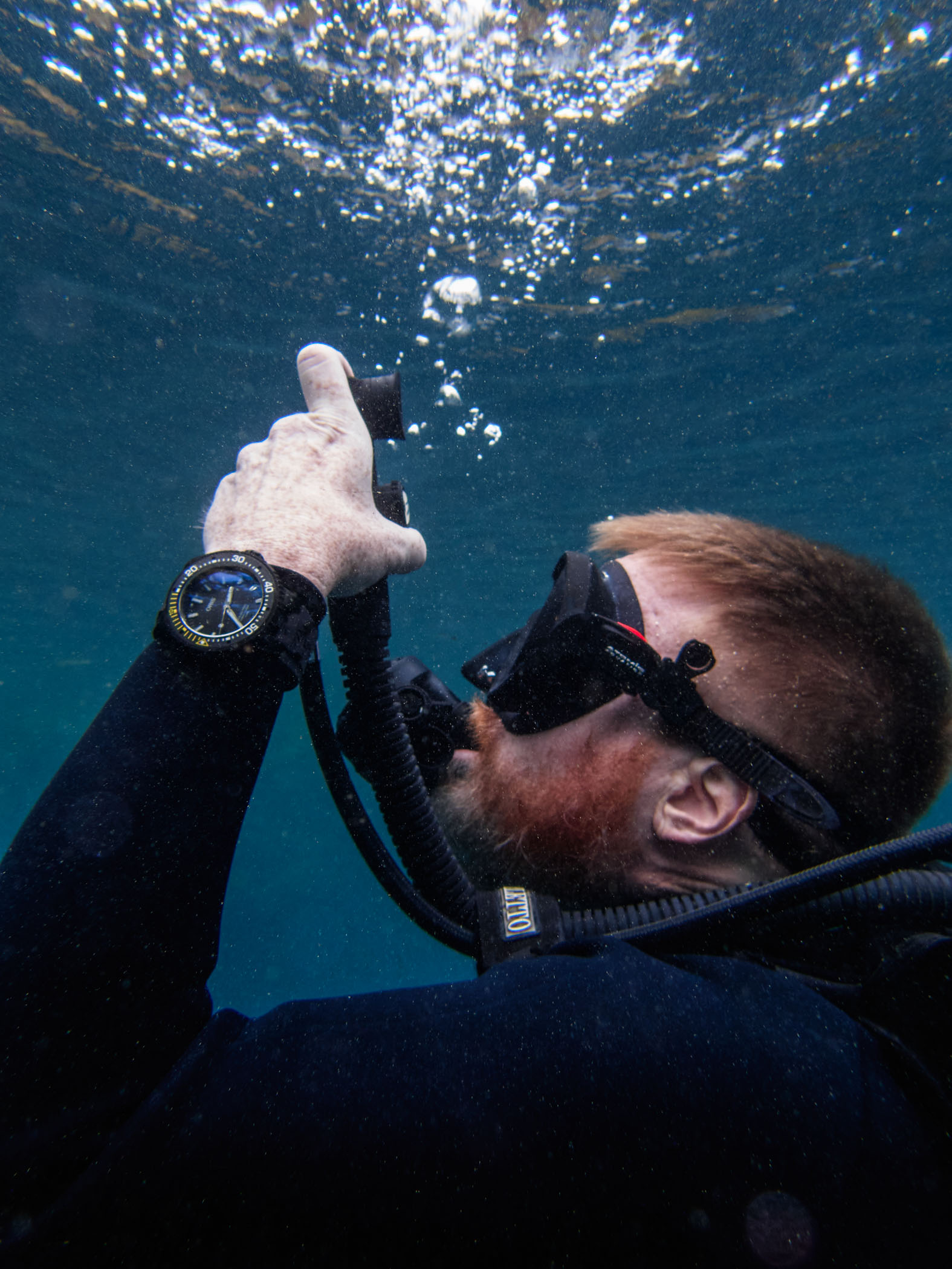 Maybe you don’t need a dive computer after all? Maybe just you and the Oris AquisPro can make it to that 1,000-metre mark? Okay maybe not, but you get my drift. We didn’t reach anywhere near that mark but the AquisPro is a superb diving companion, even at shallower depths. In and out of the water three times at various depths, a few knocks against rocks and the AquisPro doesn’t bat an eye. It serenely stares at me as if to say, “Is that all you’ve got?”