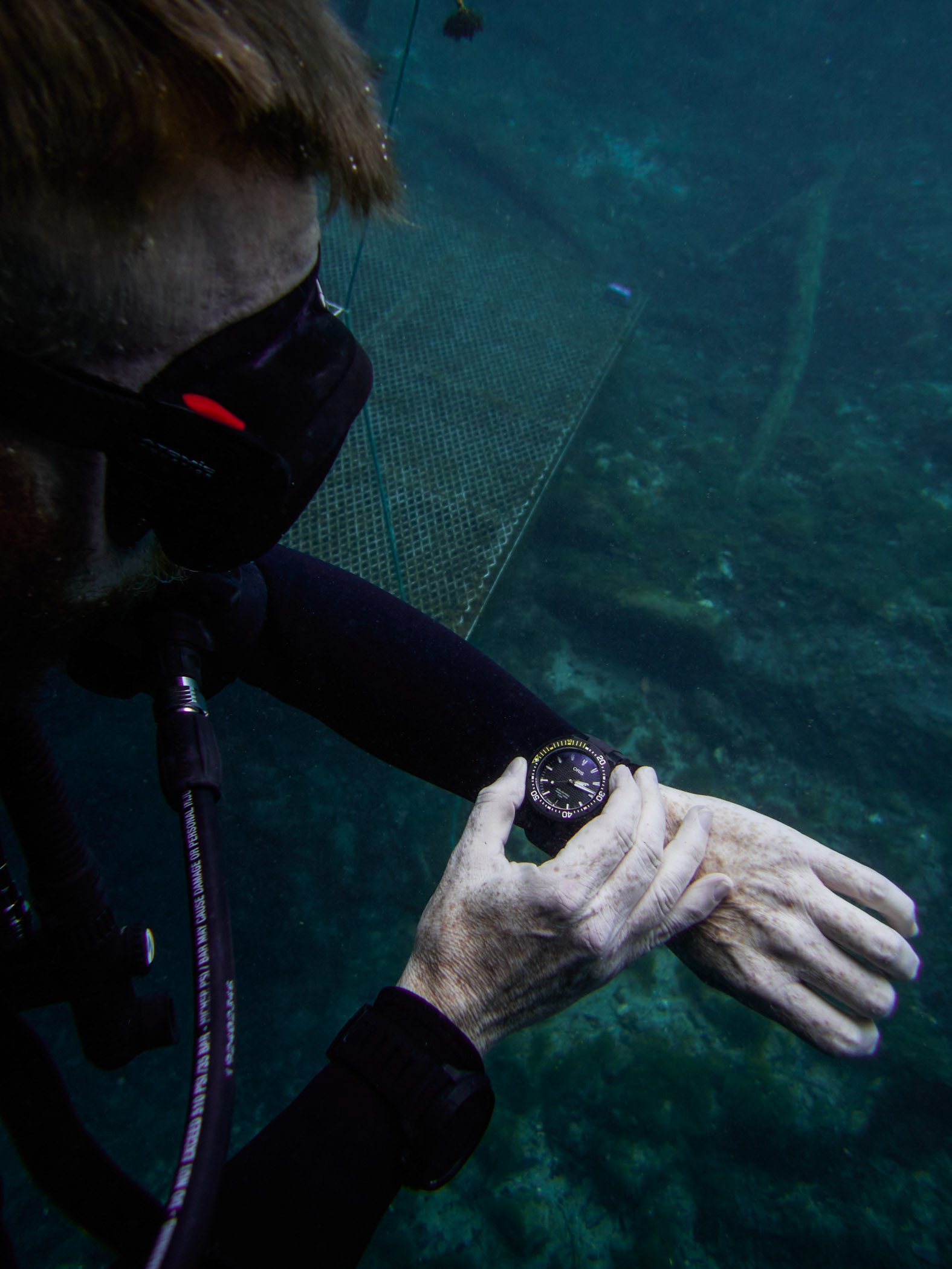 I think I have gushed enough about the bezel for one lifetime, but setting it before descent is an absolute pleasure. In the freshwater cavern with limited overhead light, the ample Super-LumiNova cuts through the dark murky water, and with the help of the contrast offered by the black dial and case, instantly offers up the data you are after at a glance. As I said above, some vintage-inspired dive watches evoke feelings of the old days of diving when you ponder them underwater, but this one does quite the opposite. Matched with a modern-day diving rig it makes you marvel at the technology and forward-thinking design, and wonder just how far you could take it.
