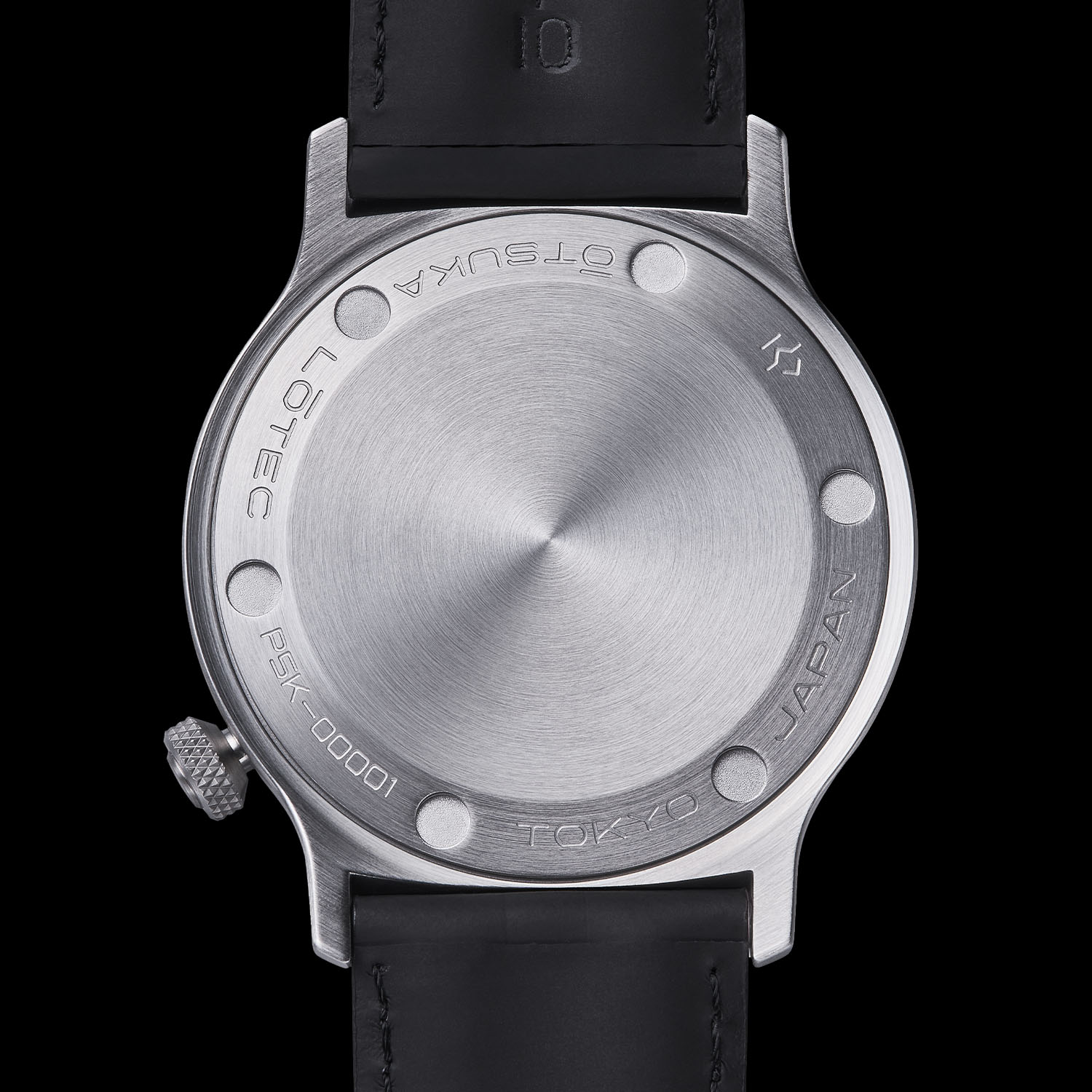 The new watch, the Otsuka Lotec No.5 KAI, retains the overall and nonconformist shape of the lineup, with a 40.5mm diameter and a three-dimensional shape with high-profile box sapphire crystal, with the case edge lowered to the maximum extent. The case thickness is measured at 7.6mm, while the watch is 12.2mm – just to give an idea of how protruding the crystal is. The case, made in steel, is finished in the classic way of Otsuka Lotec, meaning deliberately rough and industrial, with straight-grained surfaces all around. The caseback is solid steel and the water-resistance rated at 30m.