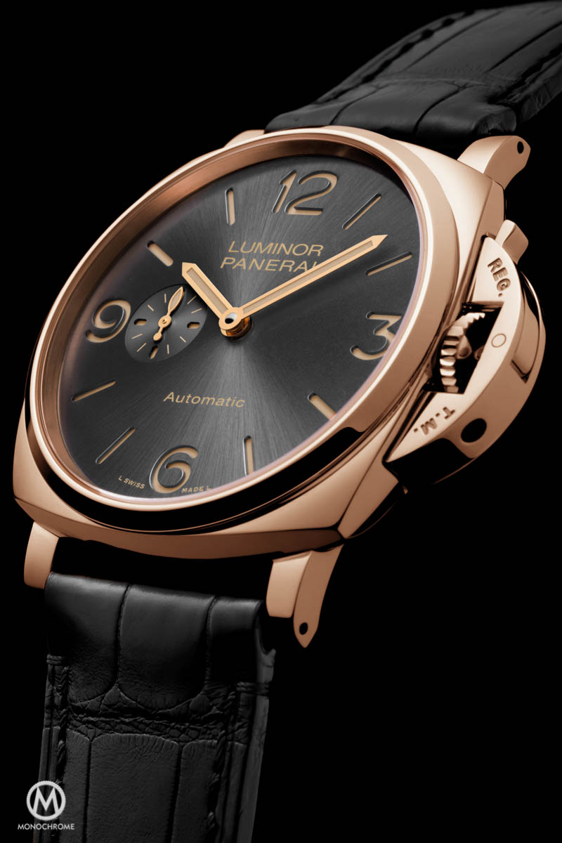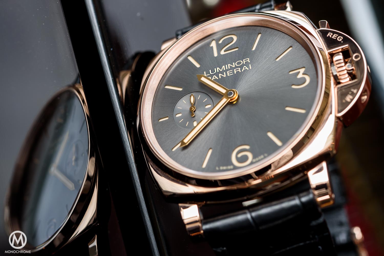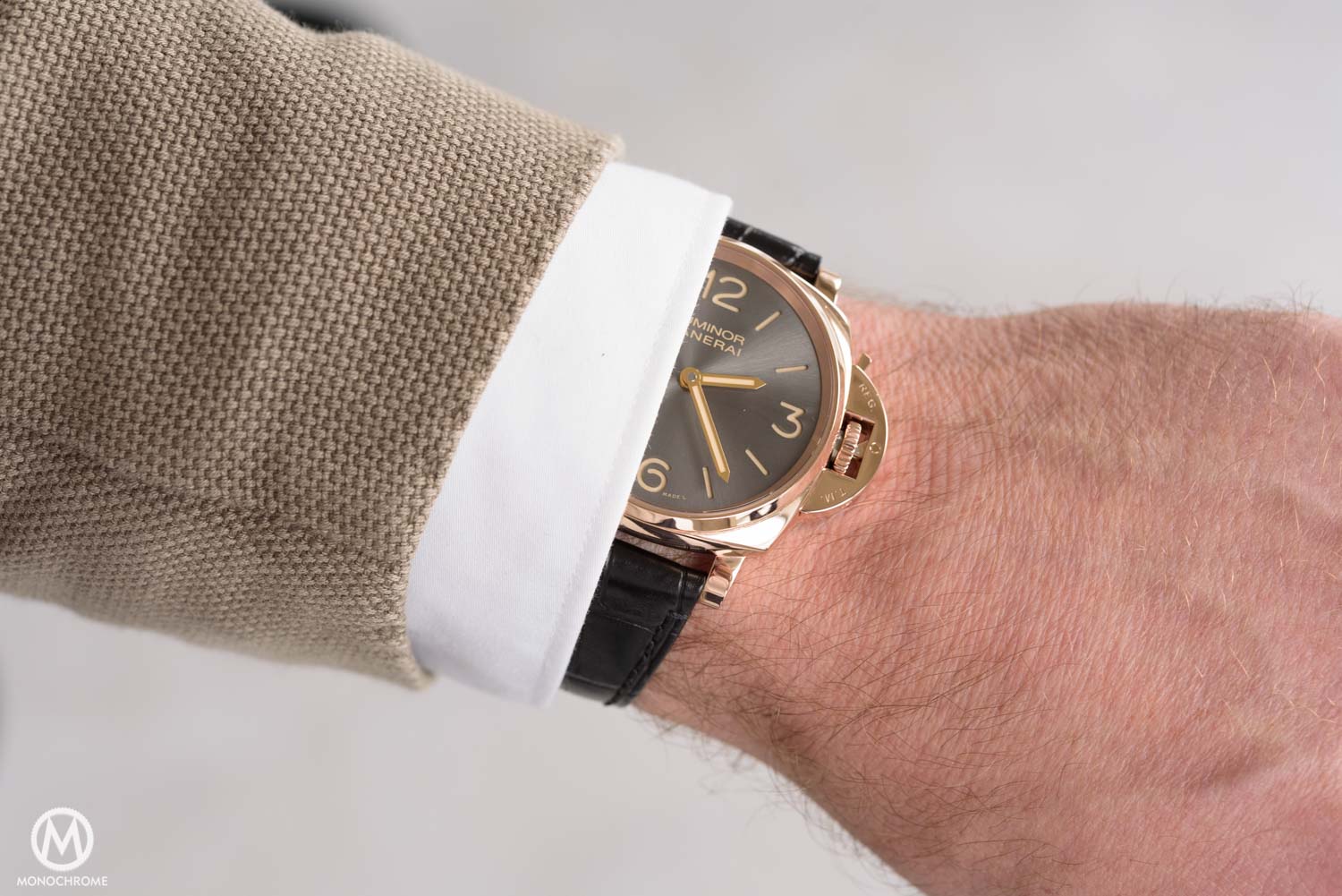 Gorgeous watch in rose gold 45mm. Complete nonsense regarding “sticking with tradition “. Moving with the times without comprise is what watchmaking is all about and Panerai have done this exceedingly well with the Due series. Looks so elegant and slim. I found my other Panerai models to be much too bulky and unnecessarily heavy. Also, 30 ATM is perfect. No one goes swimming with a leather strap anyway. Well done Panerai on an amazing watch.