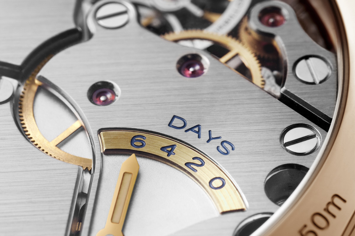 The P2005 that equipped the Panerai Radiomir 1940 Tourbillon GMT Oro Rosso PAM558 is not new – which doesn’t mean it is not a piece of interest. We already covered it when Panerai introduced the Luminor 1950 Tourbillon GMT Ceramica. It comes with an unusual 30-second tourbillon that rotates perpendicular to the balance, when a classical tourbillon does its rotation on its axis and (usually) in one minute. It also features Panerai’s usual ¾ style (even if it is composed of 3 separated bridges), with a straight graining, that hides 3 barrels, for 6 days of power reserve – indicated on the movement side by a hand. All of this is of course visible through a sapphire caseback, that will allow you to enjoy the polish beveled angles of the bridges and the circular graining of the main plate.