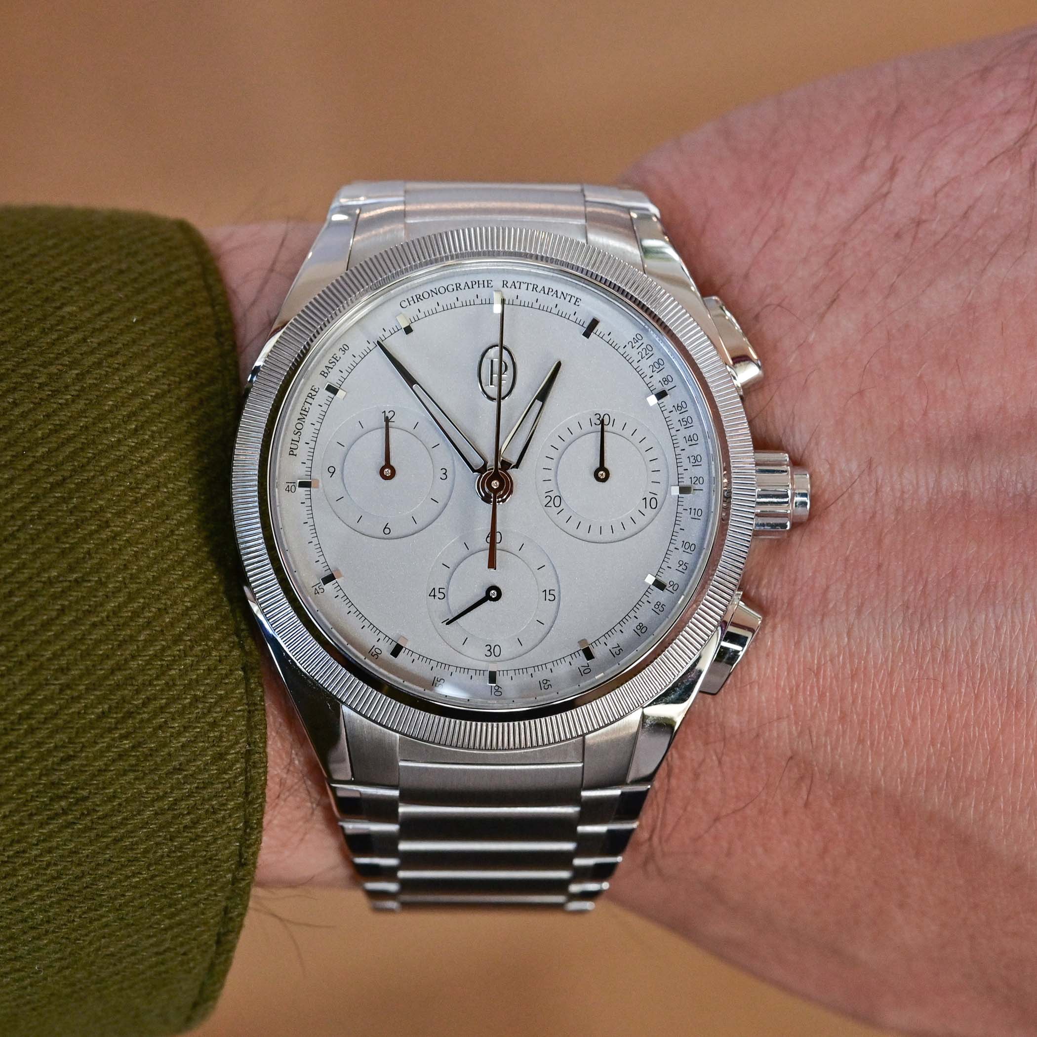 The complexity of developing an in-house integrated chronograph is not just to do with the overwhelming amount of parts – levers, gears, dedicated gear trains for the elapsed times, a mechanism for the pushers and an activation device – but rather the integration and adjustment of the movement. A chronograph, as Brice explains in his article, “relies on kinematics with a chain of actions, each one determining and triggering the next, and each sequence precisely synchronized and adjusted. Even the tiniest imperfection has a knock-on effect, travelling down the line like a series of dominoes, disrupting the entire movement. From the action of pressing a pusher to the start of the second hand of the chronograph, it is a serious amount of parts engaged. All have to be perfectly conceived, assembled and adjusted to perfectly run together”. Add to this the issue of precision, which can be seriously jeopardised by the incorporation of a second train, and you understand why the development of integrated chronograph movements is limited to a handful of watchmakers.