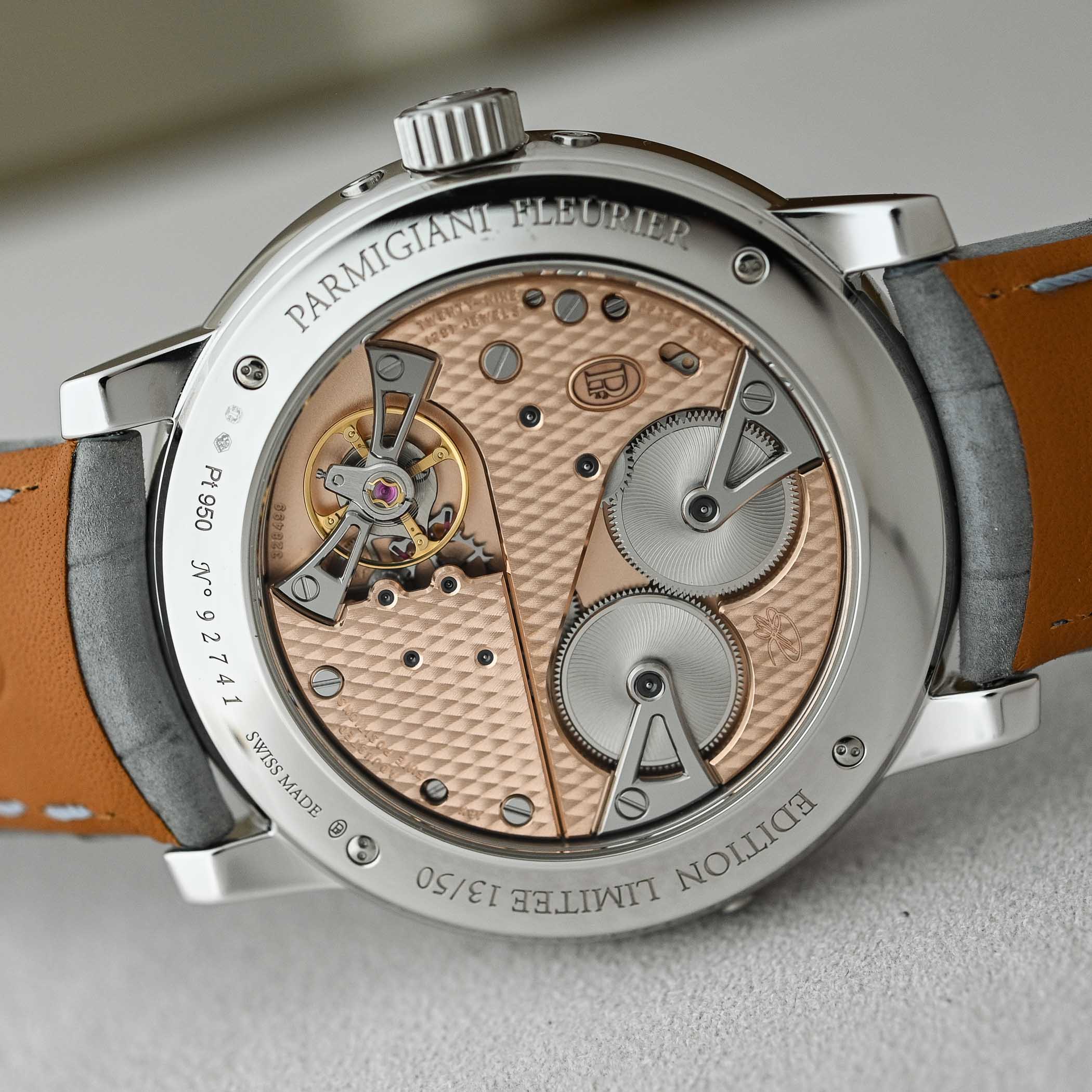 Both models are paired with an Arctic Grey, hand-stitched nubuck alligator leather strap and a pin buckle that matches the case material. Limited editions of 50 pieces in each metal, the price is CHF 92,000 in platinum and CHF 85,000 in gold. More information at parmigiani.com.