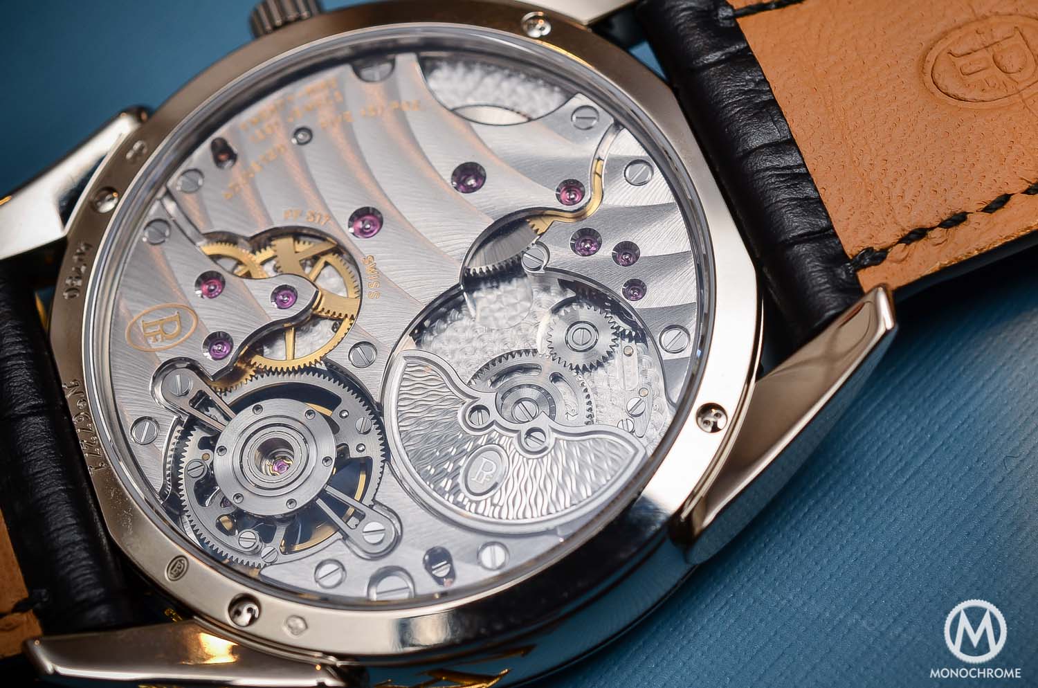 Let’s get back on numbers. Parmigiani Fleurier claims that this Tonda 1950 Tourbillon is the thinnest automatic flying tourbillon. This means that that it is not the thinnest tourbillon movement in the world. This goes to the Bvlgari Octo Finissimo Tourbillon, with a movement measuring 1.95 mm. However, this is a hand-wound watch, meaning no rotor that adds some thickness to the movement. In terms of thinness, we could also mention the Breguet Classique Tourbillon Extra-Thin Automatic 5377, that is automatic, with a peripheral rotor (to gain in height). It measures 7mm overall and 3mm only for the movement. However it is not a flying tourbillon, but a classical one, with bridges on top and on the back. There’s also Arnold & Son with the UTTE, a watch that overall measures 8.34mm. However, it’s a hand-wound timepiece.
