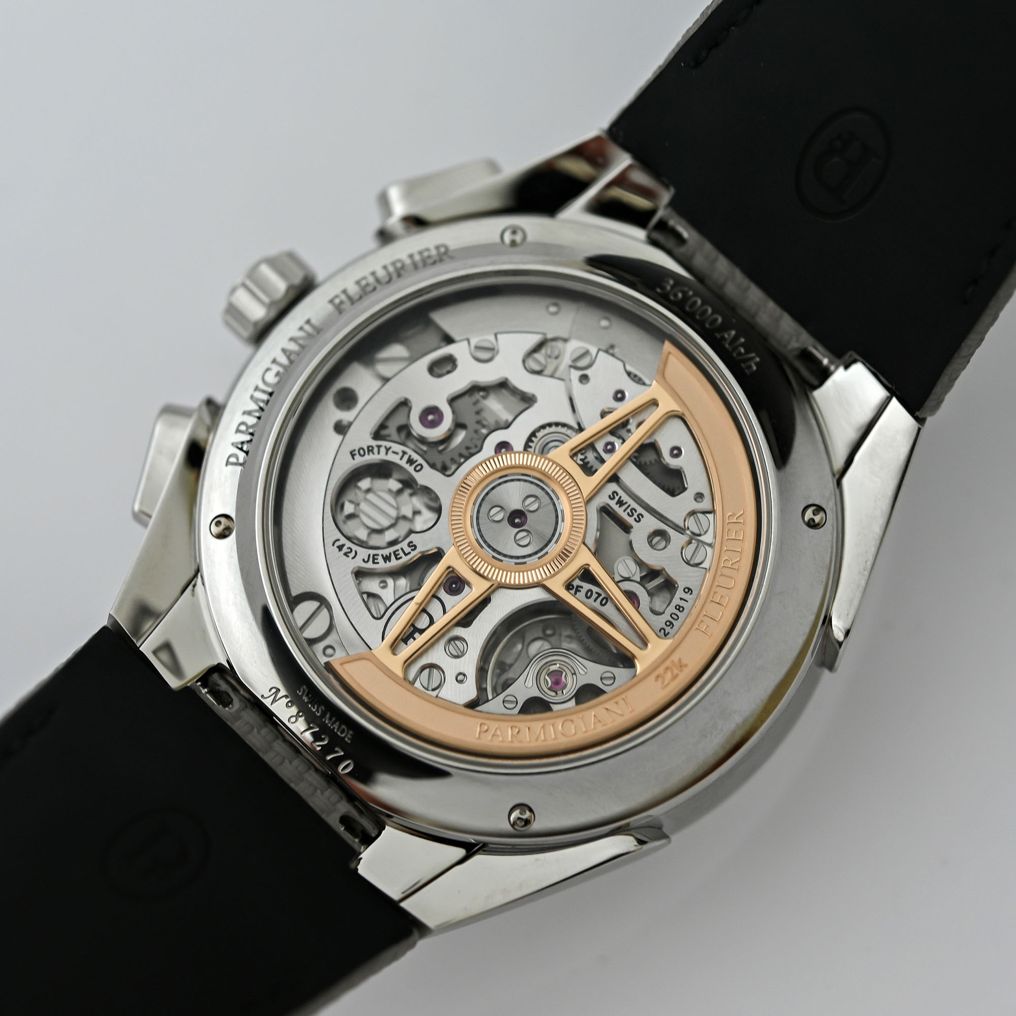 While I’ve been critical of the new Toric’s price, this model is more sensible considering the league they’re competing in, and the very nice calibre inside, which I’m guessing is Parmigiani’s version of the VMF6710. Toe-to-toe with automatic vertical clutch chronos from AP and Patek it holds its own technically, and comes out on top for finishing.