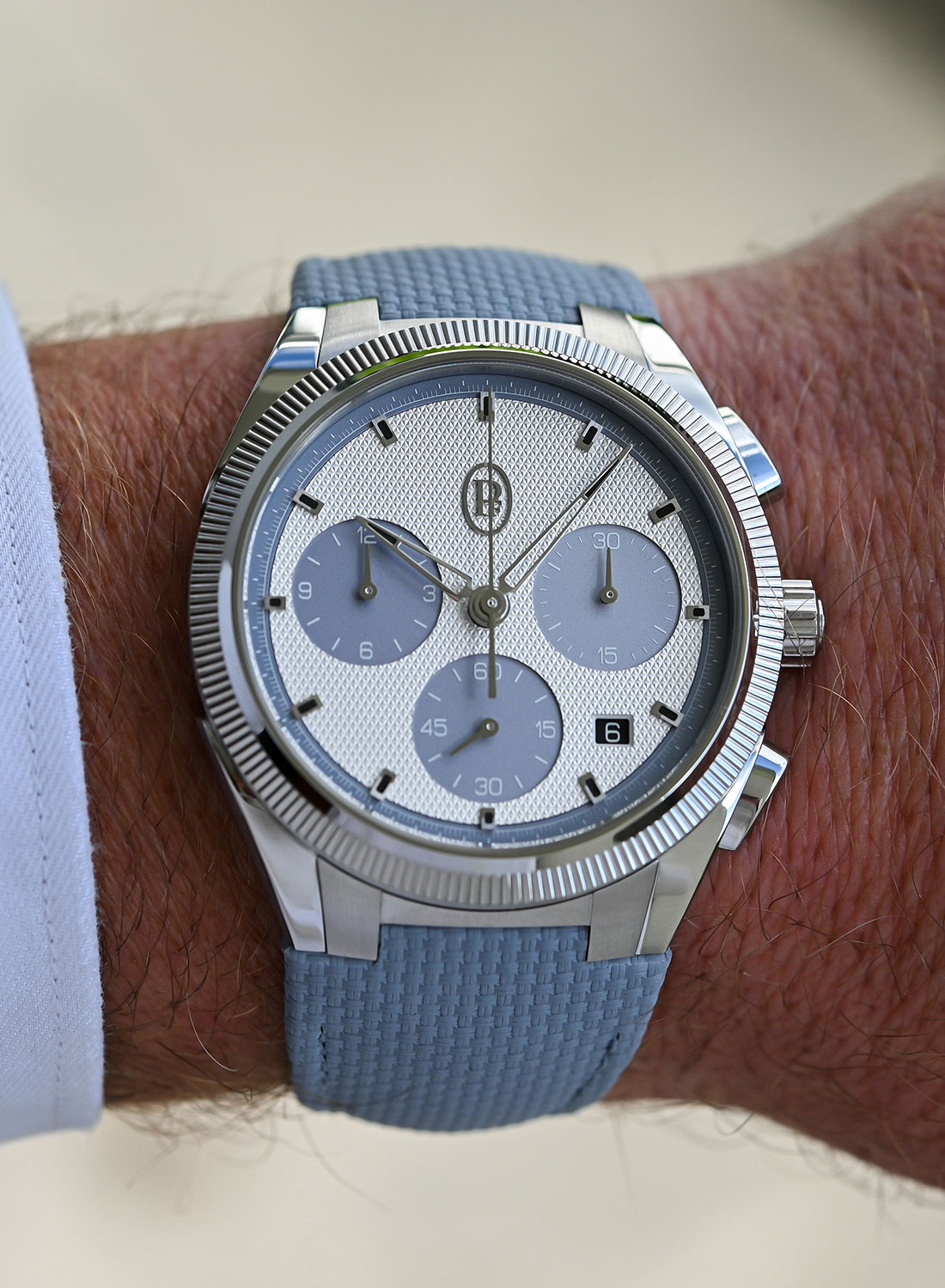 New subtly coloured versions of the sporty-chic chronograph by PF.