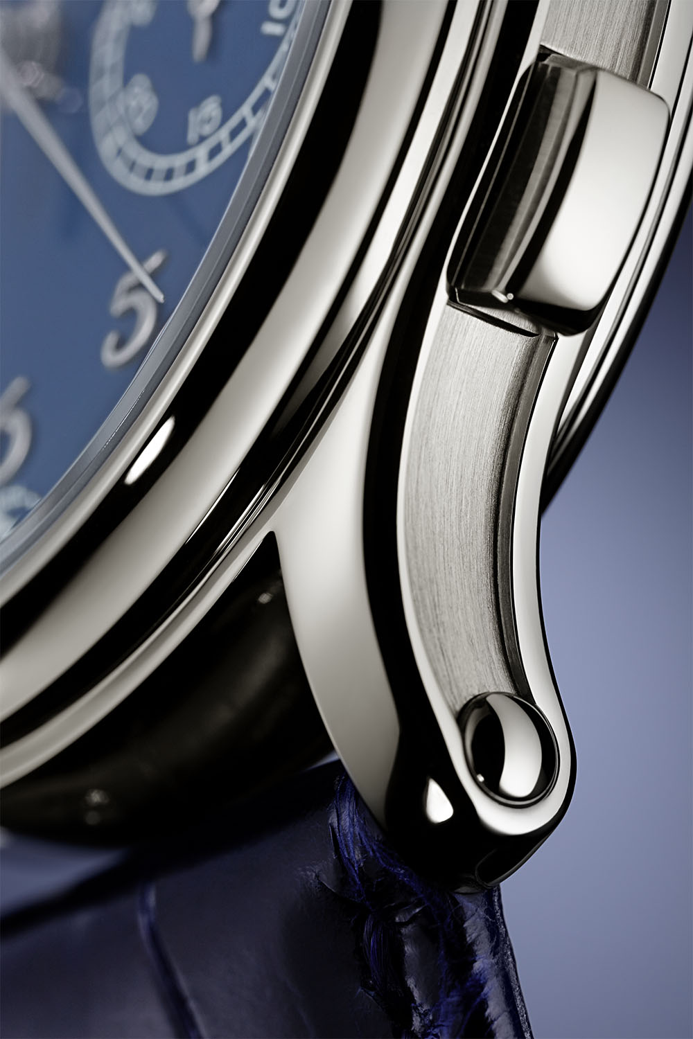 The blue dial is bringing a slight touch of modernity to this timeless design, which is reinforced by the matching blue alligator strap with a glossy finish. It is closed by a 950 platinum fold-over clasp with the Calatrava cross logo.