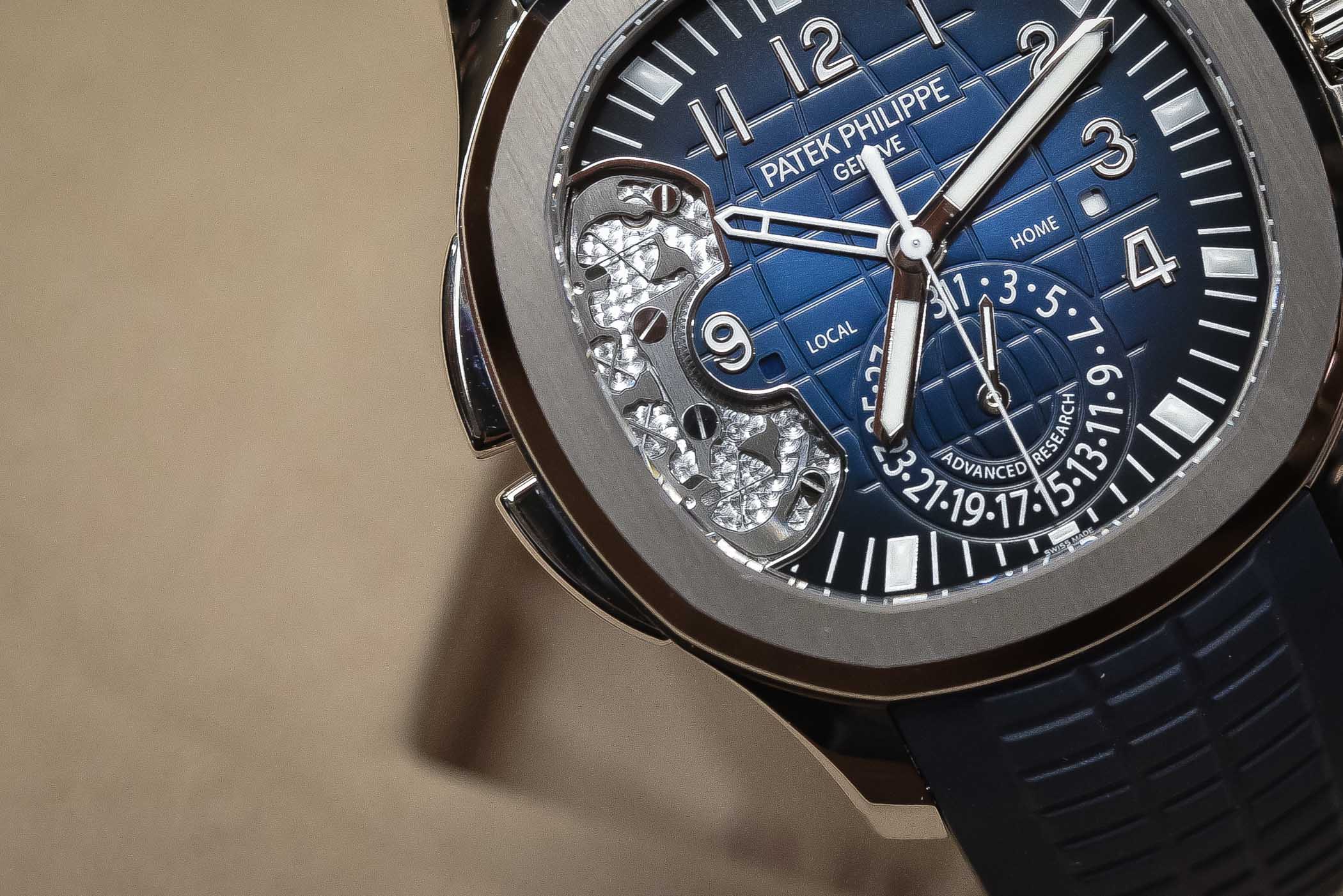 “The big kicker of course, for hardcore Patek fan, in particular, is the partially open-worked dial, which puts the time-zone correction mechanism on full display.”