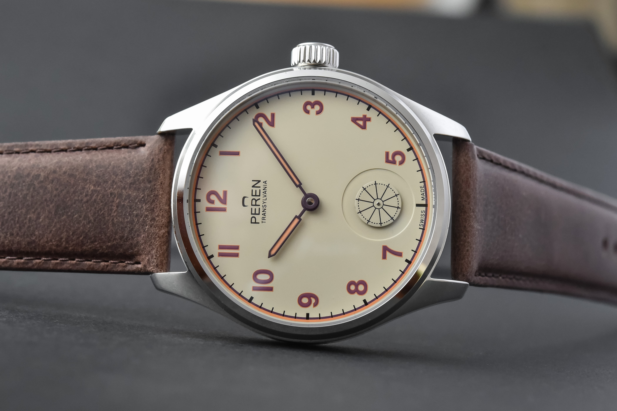 If Transylvania is best known as the mysterious land of bloodthirsty vampires, the story of the timepiece we are reviewing today is related to a watchmaker, Eugen Hintz (1869-1962), who had settled his boutique/workshop in the Transylvanian city of Fagaras. The Peren Hintz is a tribute to a pocket watch that was produced for him by the Swiss manufacturer Wyler in the interwar period. Back then, it was frequent to see the name of the retailer who ordered a watch and sold it in his shop featured on its case, on its movement, or on its dial. Andy Bica-Popi, the founder of Peren watches, grew up in Fagaras. To celebrate the microbrand’s fifth anniversary, he decided to revisit the -Wyler/Hintz pocket watch and released an old school wristwatch with a twist. His direct-to-customer approach allows him to offer it at a fraction of the price of a similar product. Let’s take a closer look.