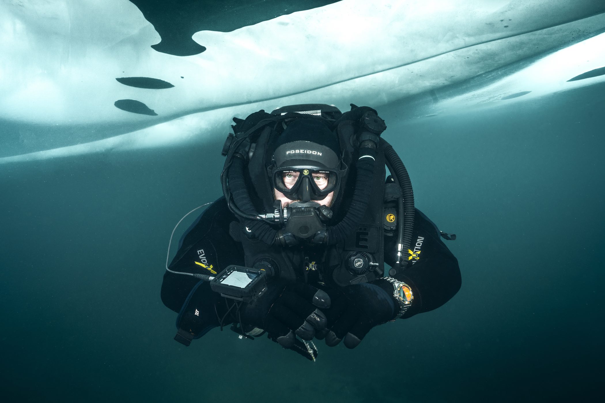 “Baikal is no place for mindless heroes,” says a dark, deep voice – in the video you can see above. It’s almost threatening, but also intriguing. The photography plays even more adventurous games with imagination. Bright blue and white shots of ice and water and snow and endless horizons with doomy grey skies fill the screen. Then suddenly a man comes into view, a man dressed in a black wetsuit. Apparently, he is the person behind the voiceover. He jumps into the water. On his wrist, just long enough in the picture to notice, is a Delma Blue Shark III.