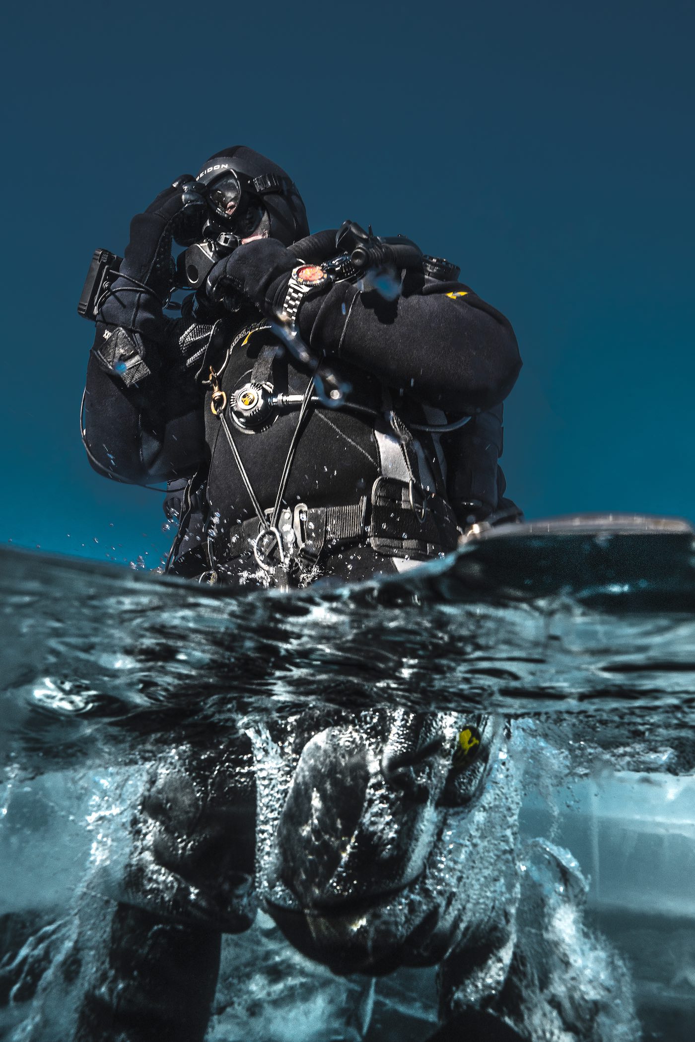 Craftsmen show us what people can make, the Earth teaches us humility. If one goes to dive in one of the most remote and hostile environments, the preparation must be impeccable and the equipment even better. The watch for this daring exercise is exactly that. It is a very reliable, rugged tool watch. Its main purpose is as a back-up instrument in case the hi-tech diving computers fail. Depending on this equipment, the divers and artists did what they intended to do: show us the beauty of the crystal clear Lake Baikal.
