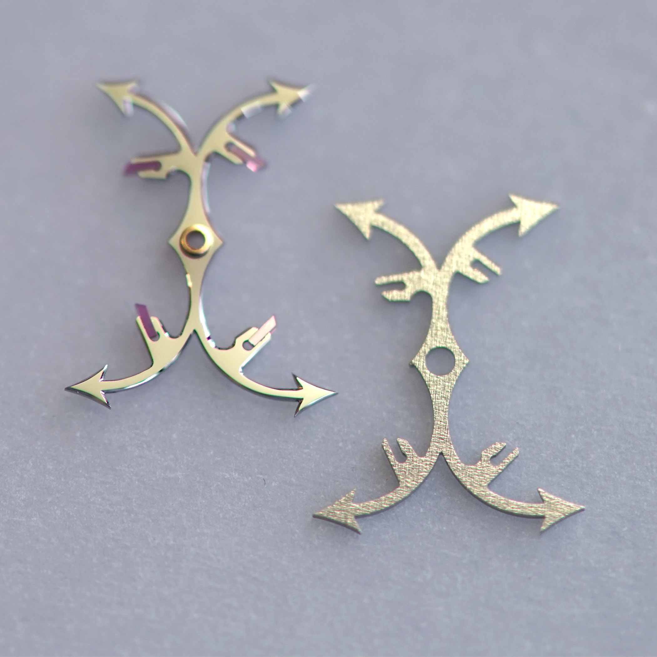 Its most striking expression is the partially transparent dial. Manufactured with Kari Voutilainen’s Comblémine, it consists of two steel plates that are sandblasted by hand and fitted onto a sapphire disc. It reveals various parts of the movement, in particular, the keyless works or some jewels and their sinks. On the periphery of the dial, the simple chapter ring is punctuated with small rectangular hour markers. The hours and minutes are indicated by elegant lance-shaped hands, which are handcrafted out of gold or flame-blued steel.