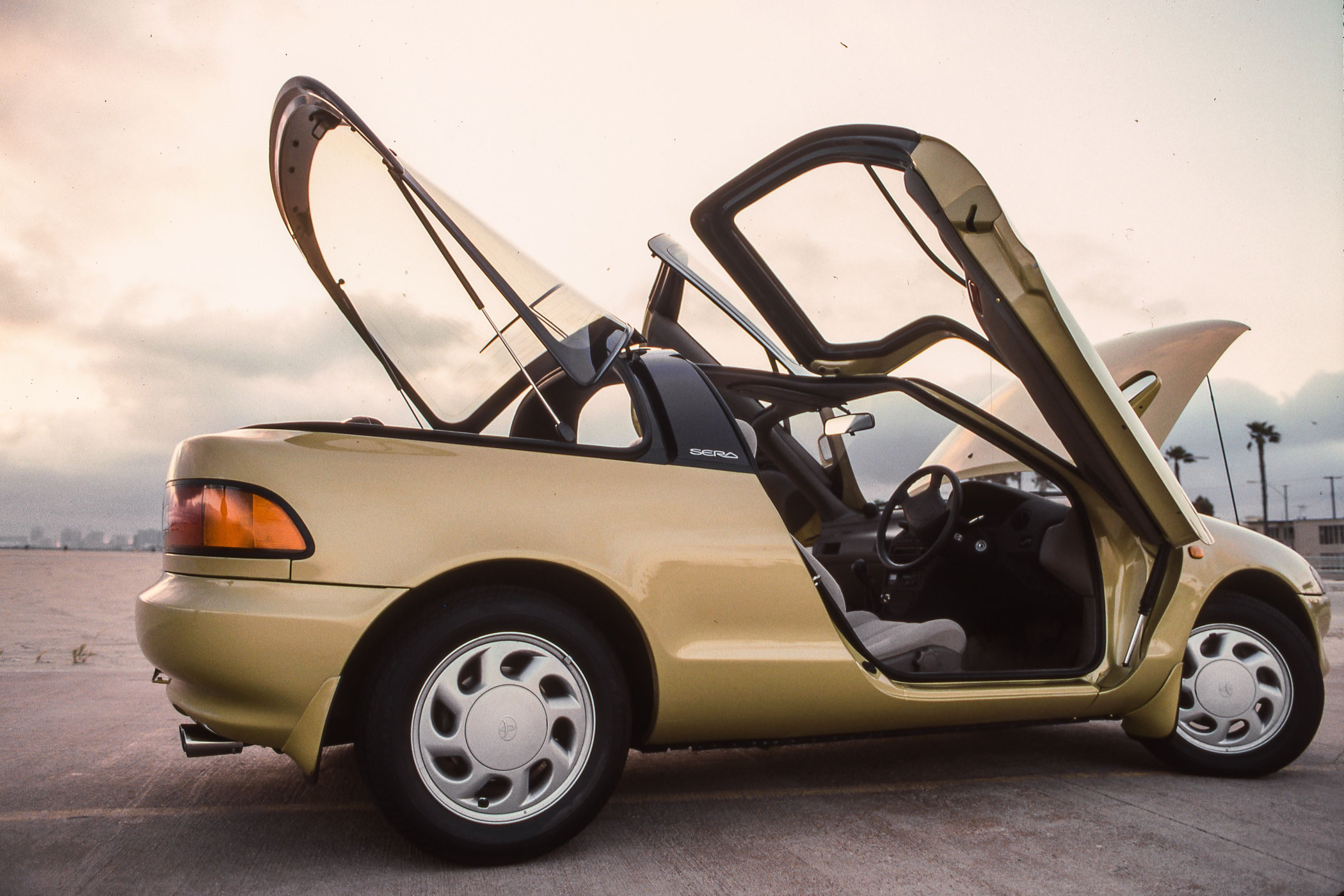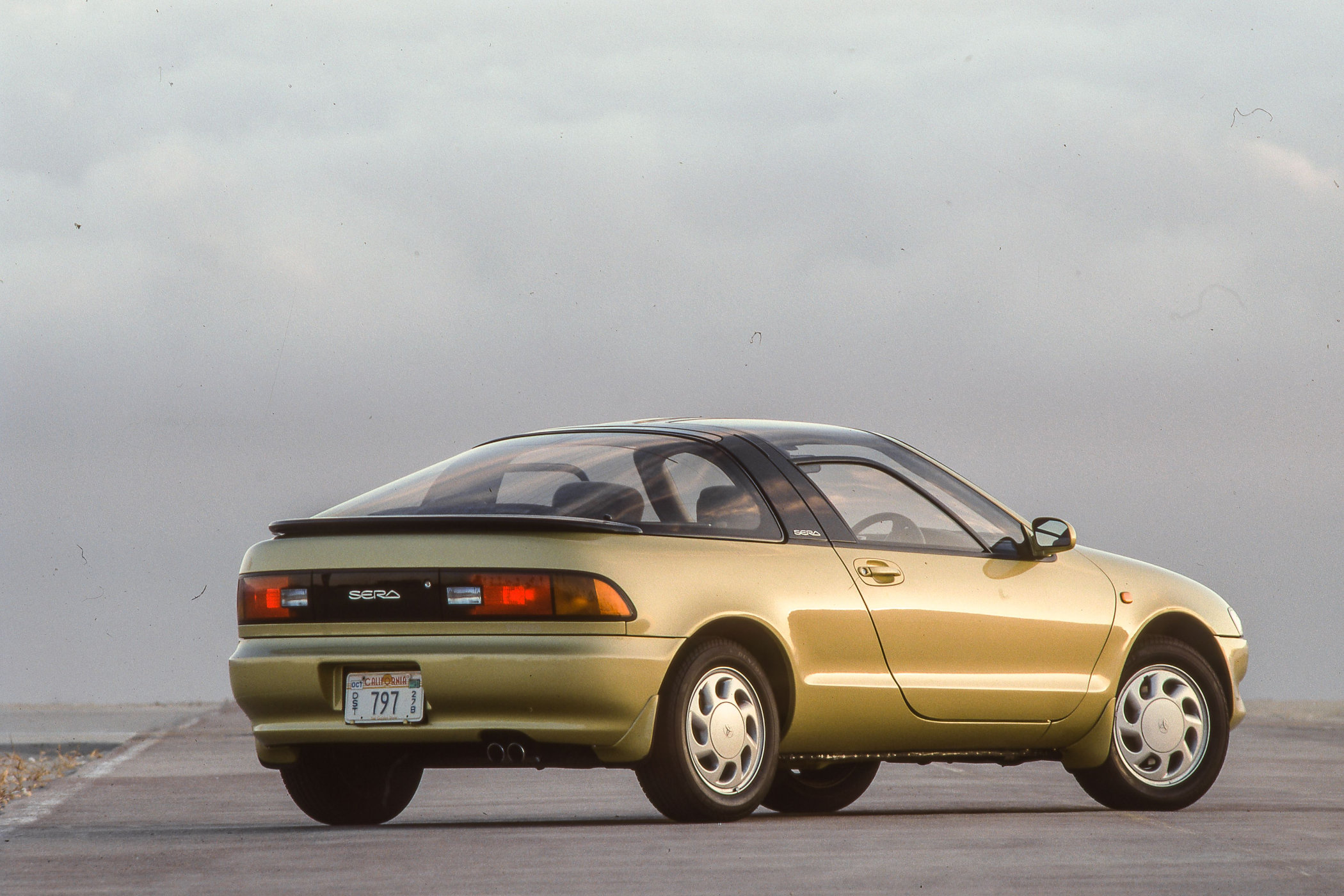 The Toyota Sera was a car produced in a period of time where more weird and wacky stuff was made in Japan, such as the Autozam AZ-1 with Gullwing doors or the Subaru SVX, another car with a weird glass roof structure (no butterfly doors though).
