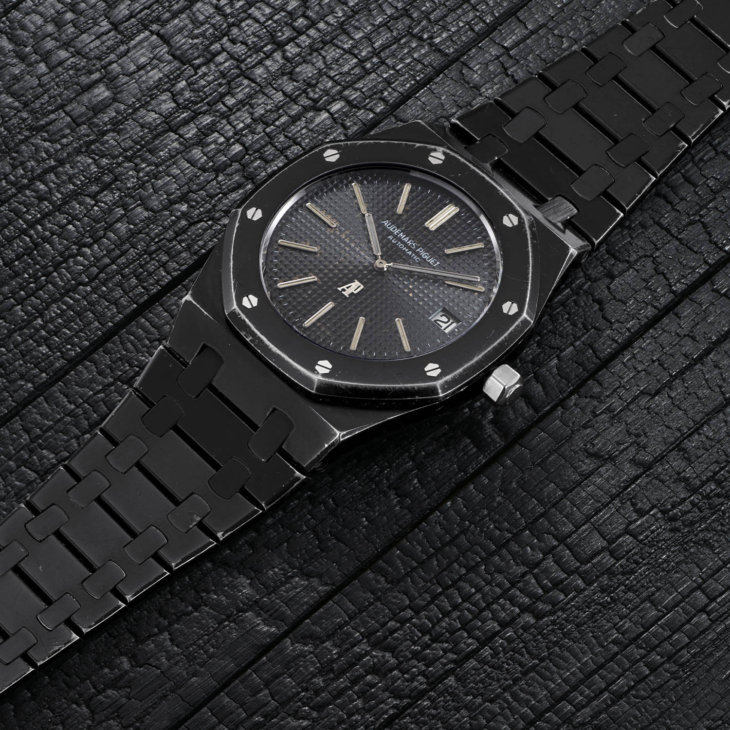Part of The Royal Oak 50th sale will be a Karl Lagerfeld black PVD coated Royal Oak Jumbo reference 5402ST. The German creative director, fashion designer, artist, and photographer was often seen wearing black PVD Royal Oak models of different sizes which he would then gift to friends and collaborators. There are multiple period photos showing the designer wearing such a watch. The present model, bought in Italy in early 1974 when Lagerfeld was living there, came back to the market in 1995 and remained in the same collection for over two decades. Note: Phillips explains that “the place of delivery of the watch and amount of wear lead Phillips’ watch specialists to believe that this watch had been the property of Lagerfeld.”