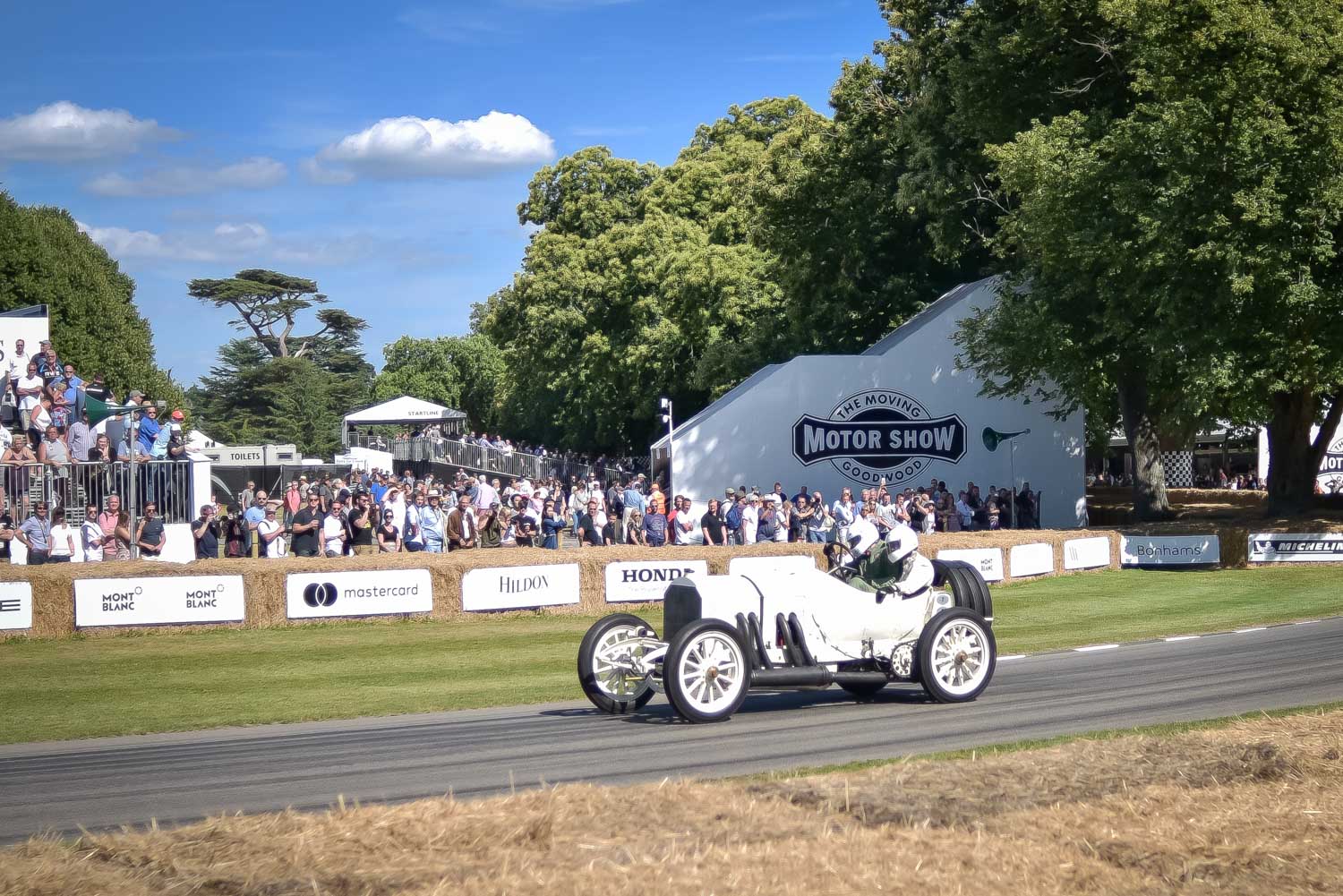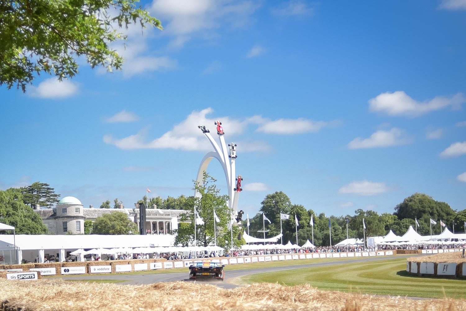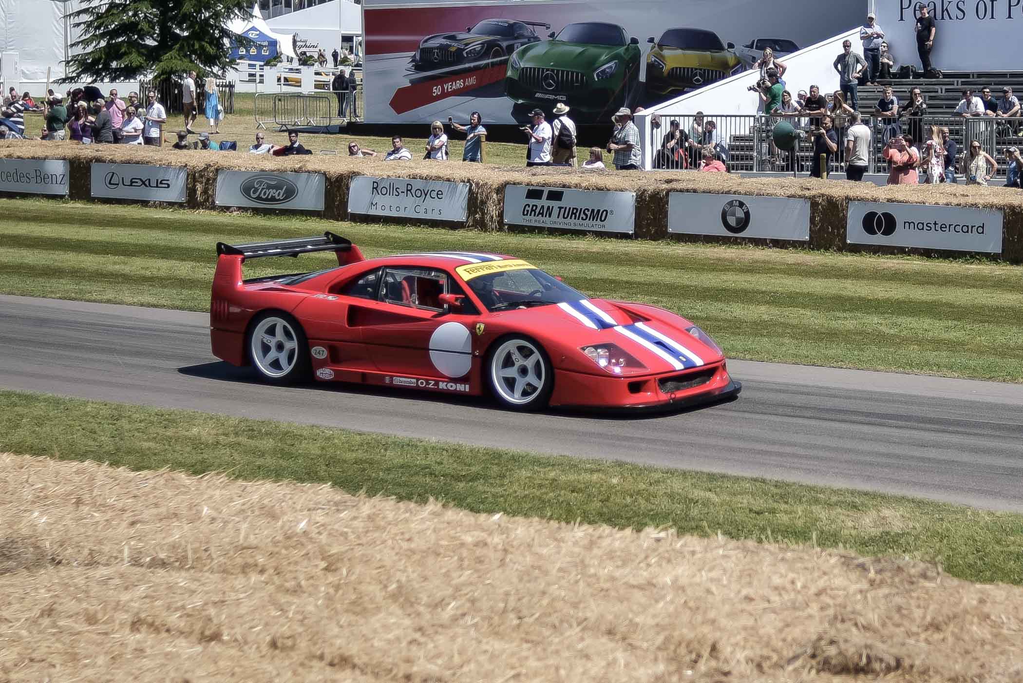 The main event of the Goodwood Festival of Speed is actually a race, classified as a hill climb. So figure that: a 3.5m/12ft wide countryside road passing in front of the Goodwood Estate and then plunging into the nearby forest, surrounded by slippery grass, bales of straw (for security) and stone walls. On that “road” (you can call it a road, as I’d name it a trail), put anything that has an engine, 4 wheels and a steering wheel and make them drive as fast as possible to reach the top of the hill. Sounds dangerous? Don’t forget that Britain is a petrol-head country. They call it fun.