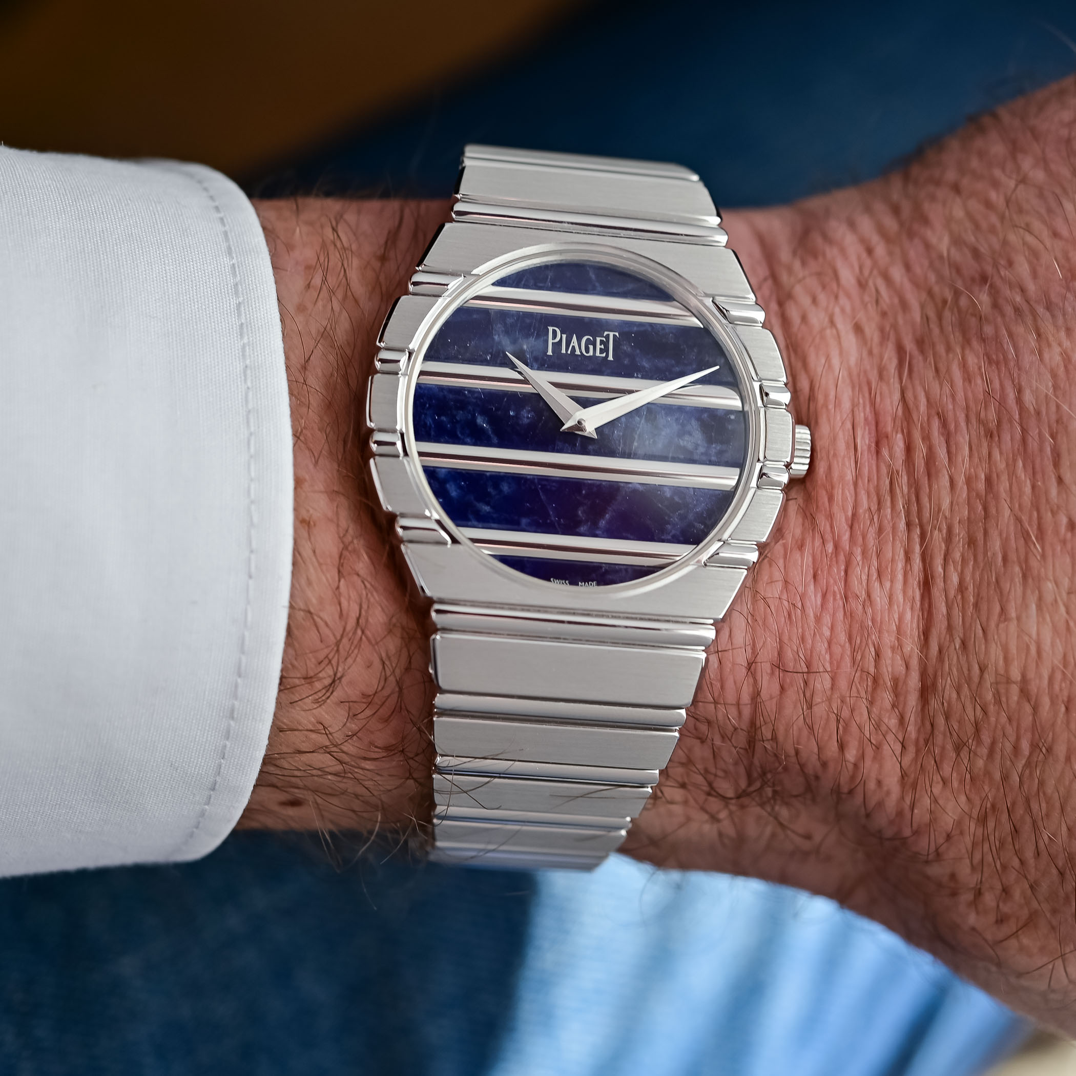 The Piaget Polo 79 Returns in White Gold with a Blue Sodalite Dial
