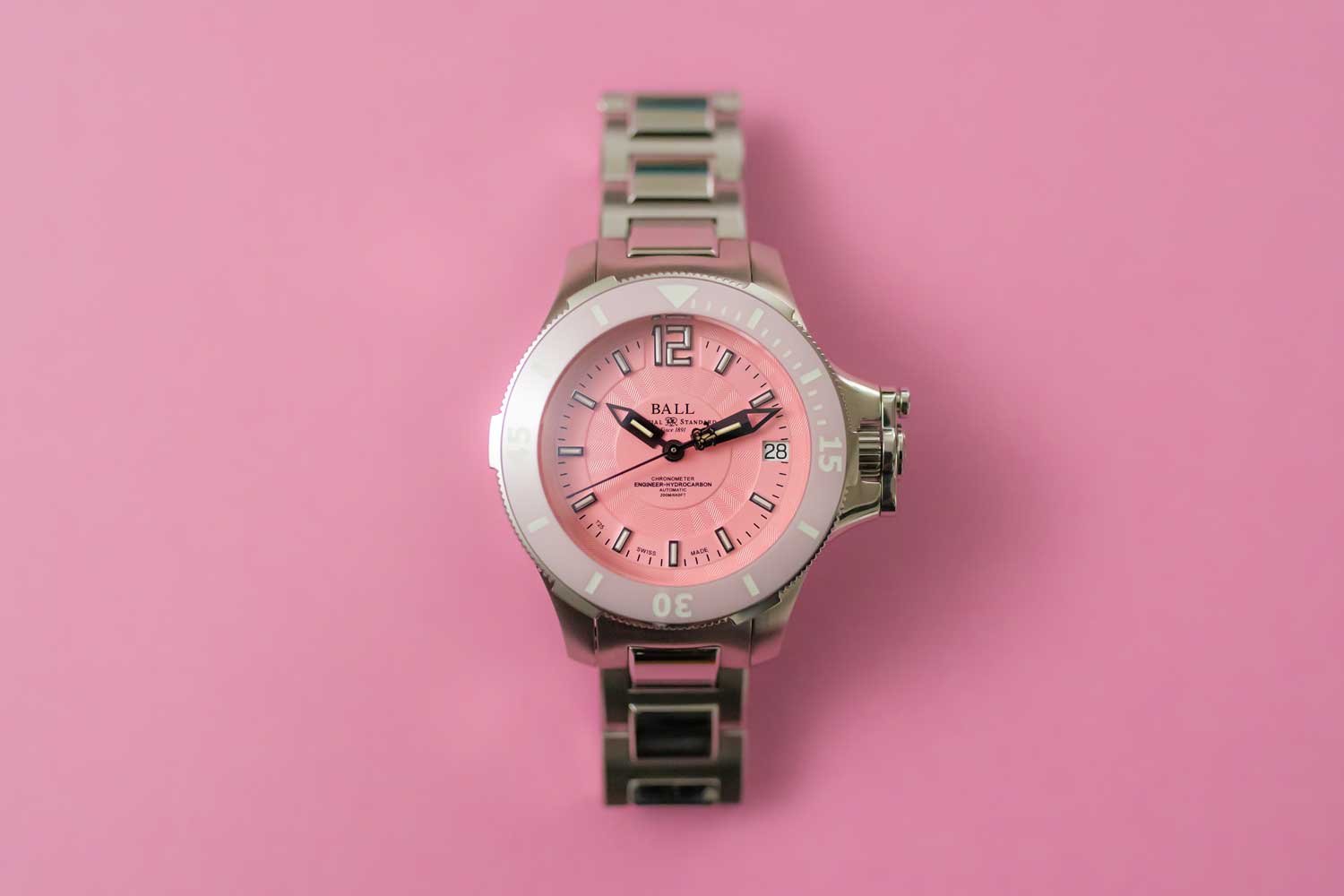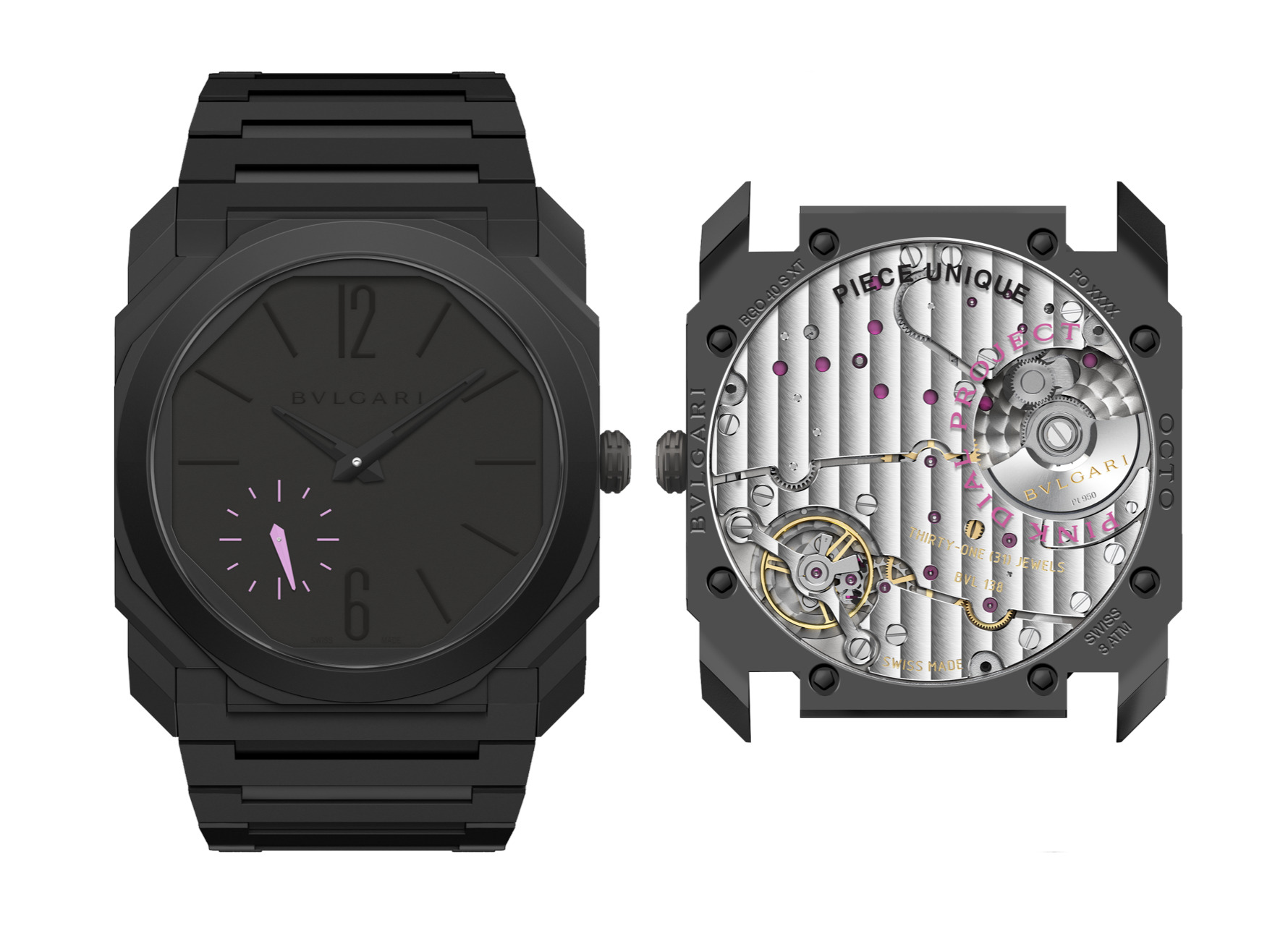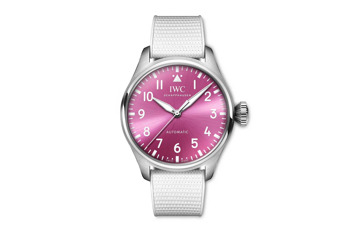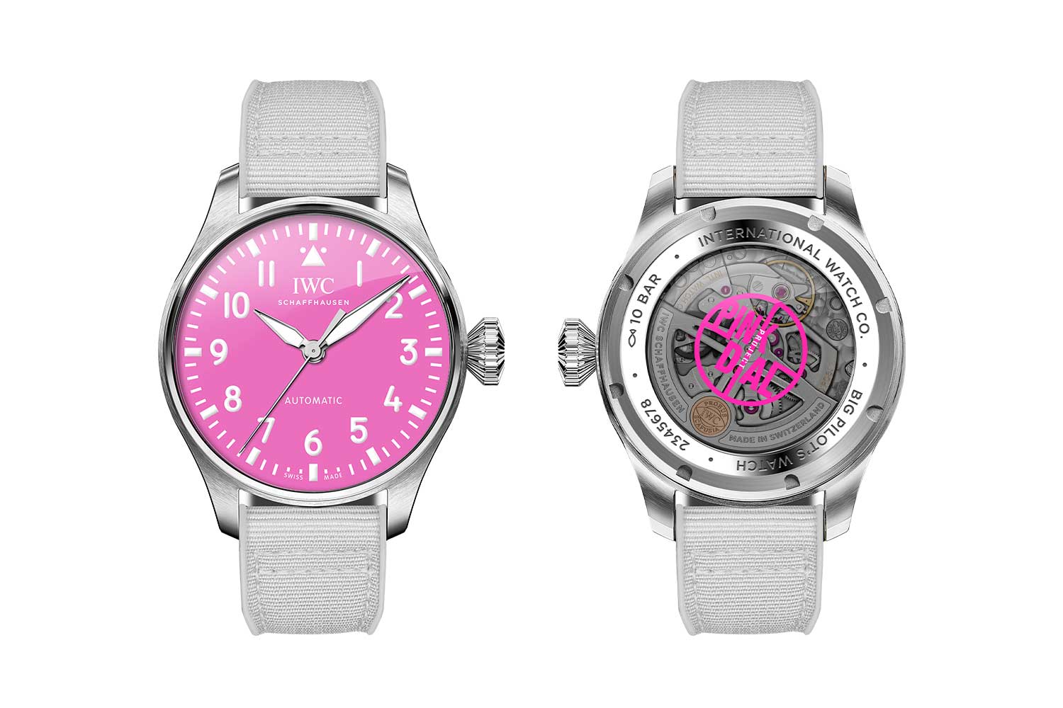The Pink Dial Project auction is taking place at Eric Ku’s auction platform Loupe This. Nineteen watch brands and “watch artist” Julie Kraulis donated creations. Among the entries is Airain with a very cool Type 20 with a pink dial, Bvlgari with an Octo Finissimo in black ceramic with a small second hand and seconds track in pink and a pink dial version of the brand new IWC Big Pilot 43.