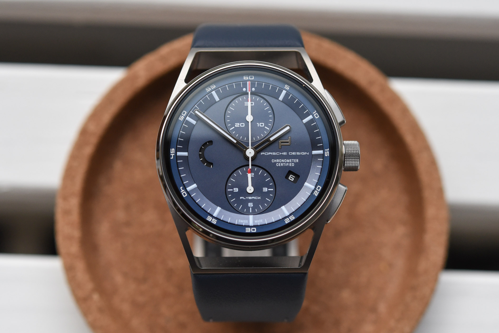 Porsche Design watches – and most objects produced by the Studio F.A. Porsche – share one thing: a love for no-nonsense, no-frills design where details are not there merely for the sake of decoration. This could sound a bit dull at first, but in fact, it isn’t. The beauty of a Porsche Design watch lies in its rational German philosophy of “form follows function”, where ergonomics guide the pen of the designer. This was true back in 1963 when Ferdinand Alexander “Butzi” Porsche designed the 911. It was true in 1972 when he created his first watches, pioneering the use of titanium and black coating. And seeing the present Porsche Design 1919 Chronotimer Flyback Blue & Leather just reinforces this concept.