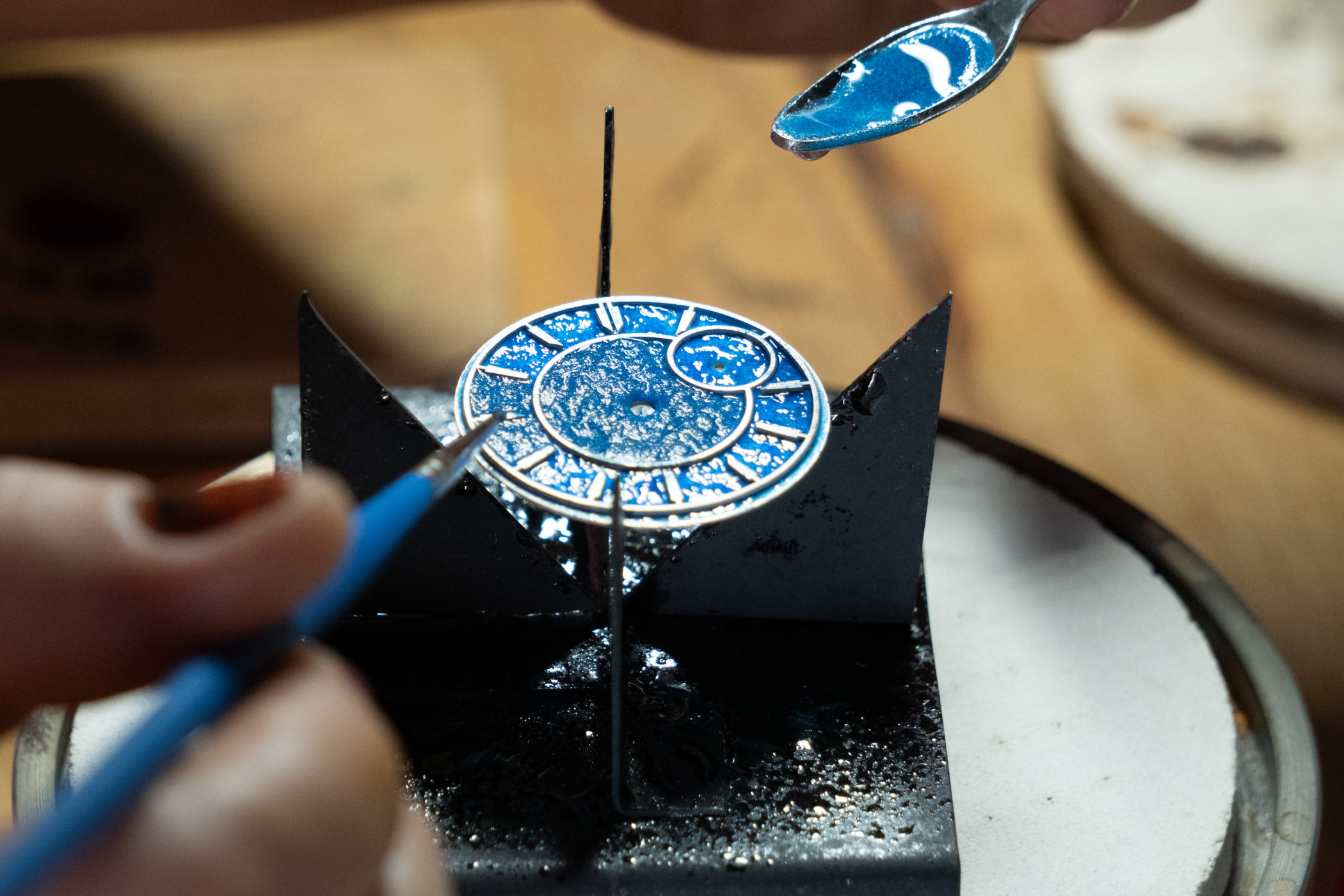 The birth of our daughter Aurelia brought us back to Austria, closer to family, and into independence. I started working as a freelance developer, designing complications and prototyping for several manufacturers. At the same time, I wanted to build that one watch for myself — something that brought together all the elements of fine watchmaking that I admire: a special movement with hand-finishing, a wearable case, an enamel dial, hand-finished hands, a proper leather strap… and so on.