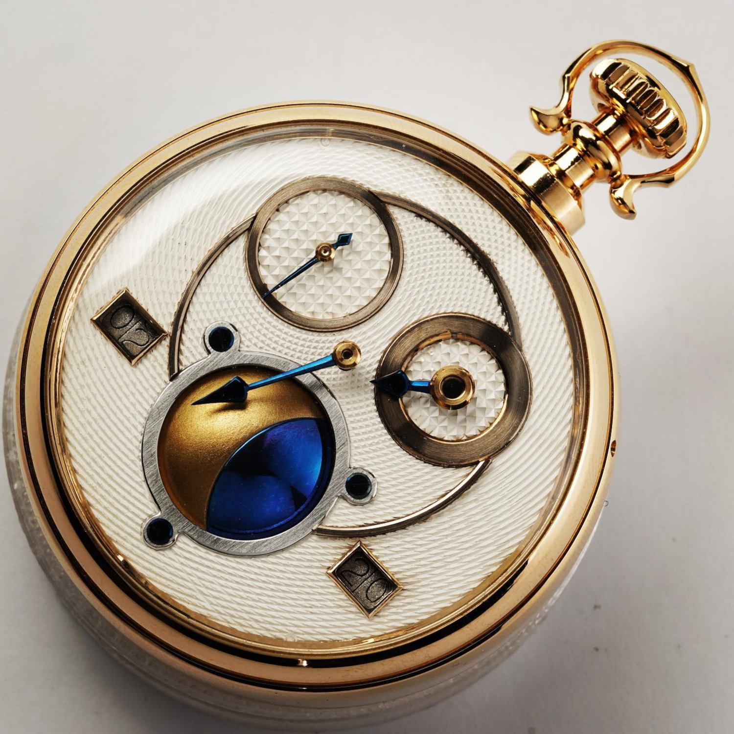 Seki: Yes, the pocket watch was something I created in my final year of watchmaking school. It’s a spherical moon phase, meaning there is an actual metal sphere inside that rotates to represent the current moon phase. The date windows also use vertically rotating drums instead of flat discs. I made these choices for higher legibility and design flexibility, but they ended up requiring me to create a unique layout. I think that’s what impressed the judges.