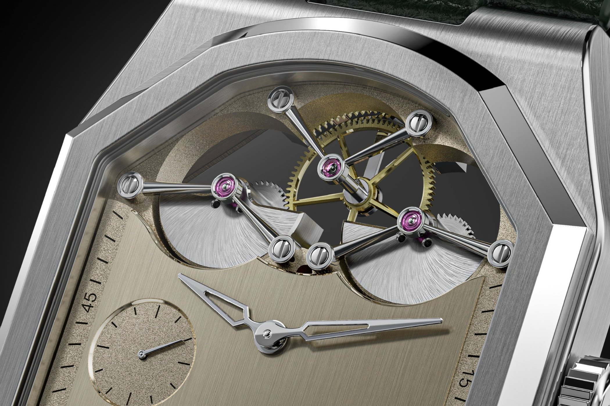 On the finishing, I definitely wanted to respect the traditions with a lot of hand work (anglage, black polish, rounded polish, brush…). The estimation is that more than 100 hours of hand finishing will be necessary to realise this watch.