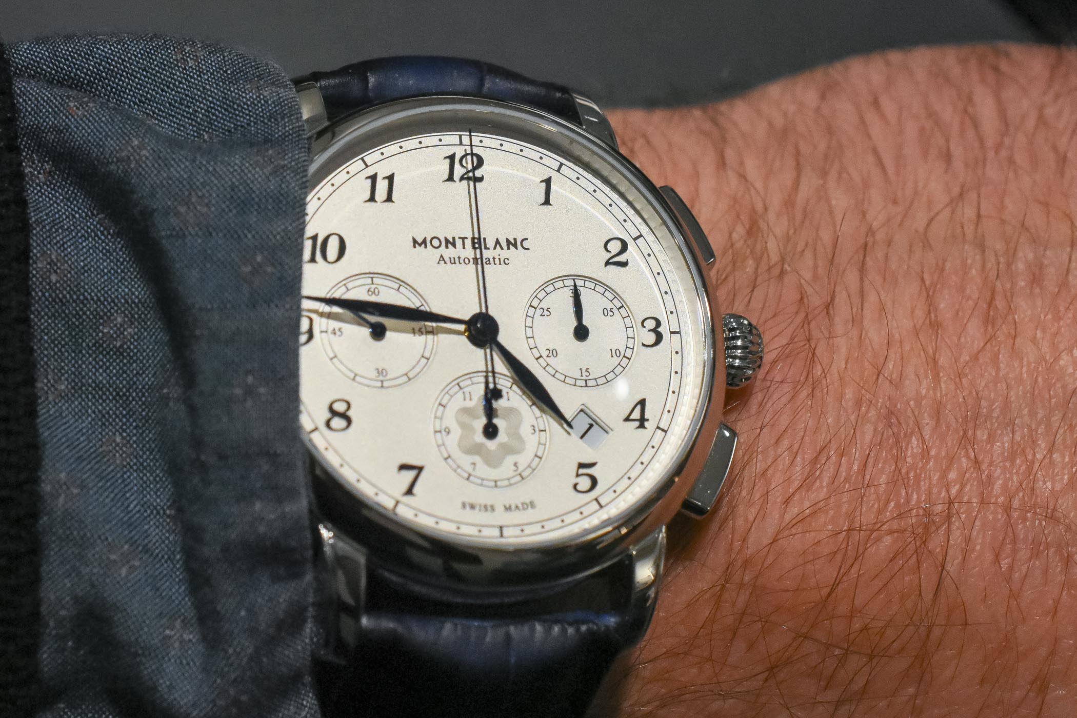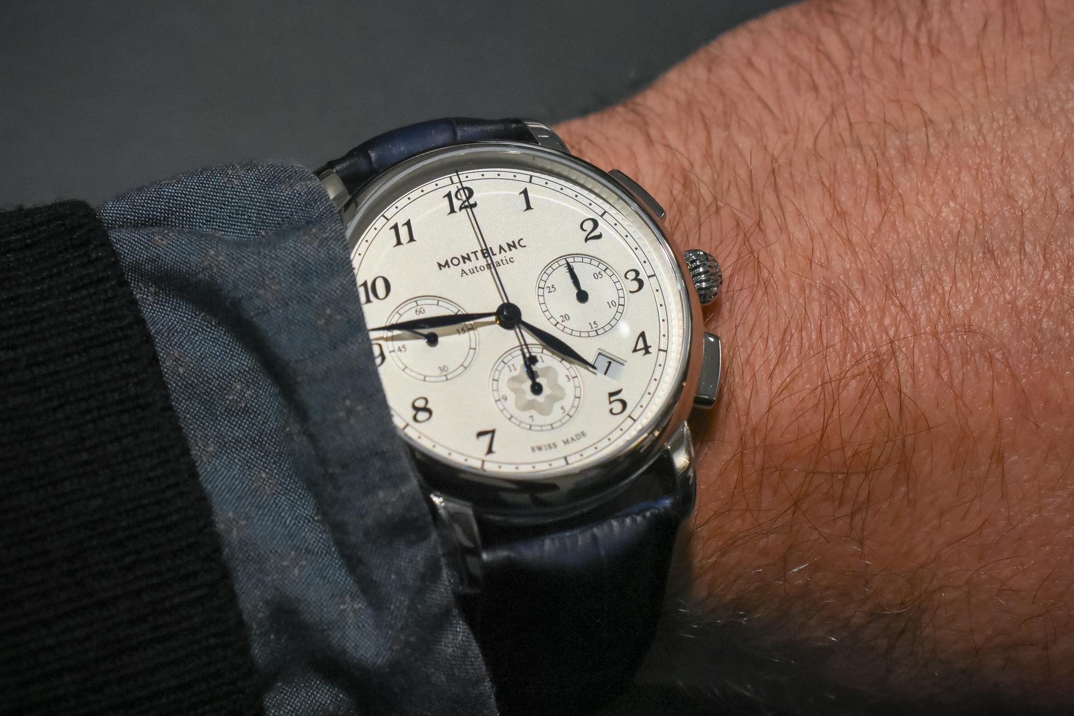 In addition to the model we got hands-on, there will also be a version with a slate grey dial and grey Sfumato alligator leather strap (ref. 118515). Both models will retail for a modest EUR 3,990. More details on www.montblanc.com.