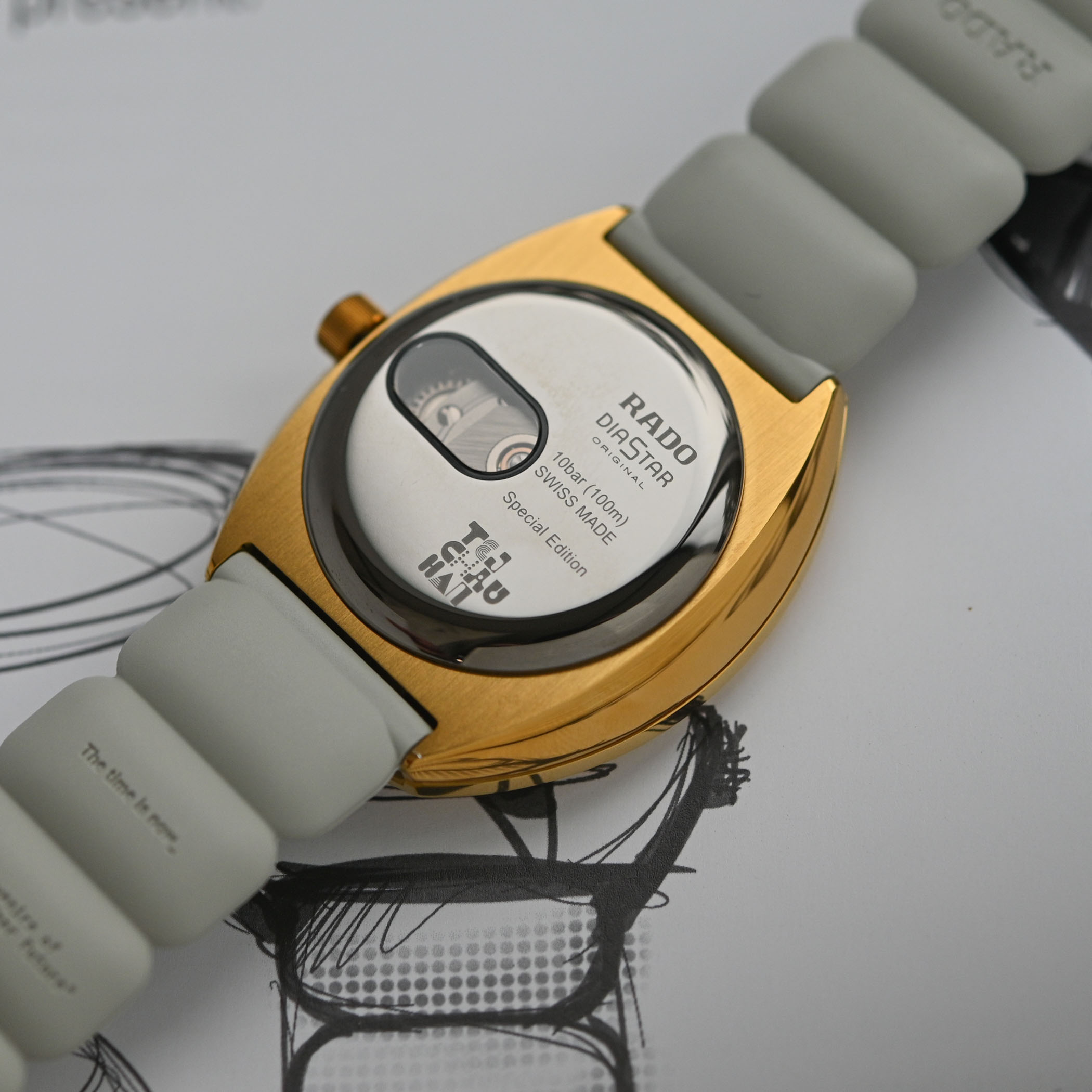 Rado watches stand out with their use of modern materials and the originality of their design. The brand collaborates on a regular basis with international designers. Among the countless initiatives in this field, in 2021, British industrial designer Tej Chauhan applied his creative vision to the True Square with a bold yellow take on the collection inspired by futuristic visions of pop culture. This first collaboration led to another opportunity as the designer was entrusted with reimagining another icon of Rado, the Diastar Original. While reinterpreting such a radical design is no simple task, the result is well worth a closer look.