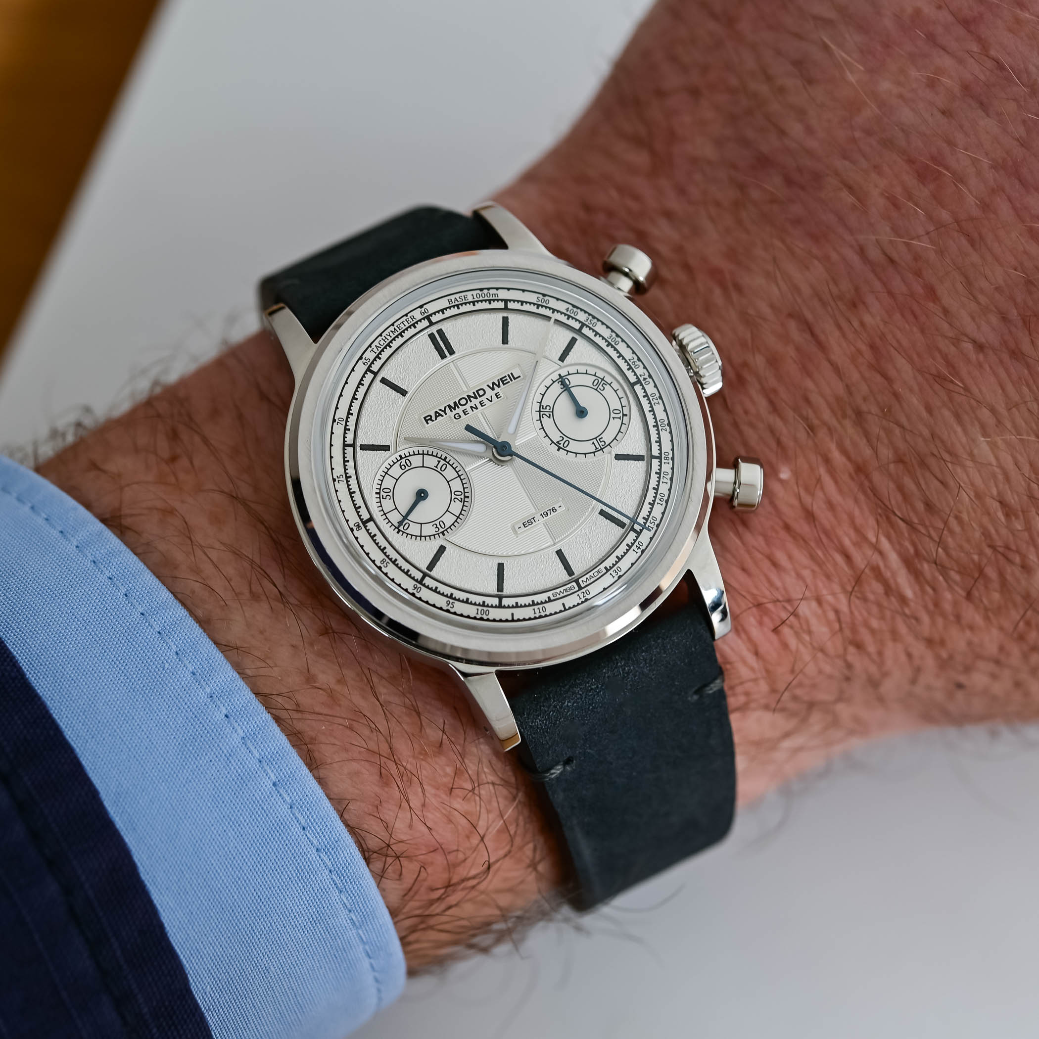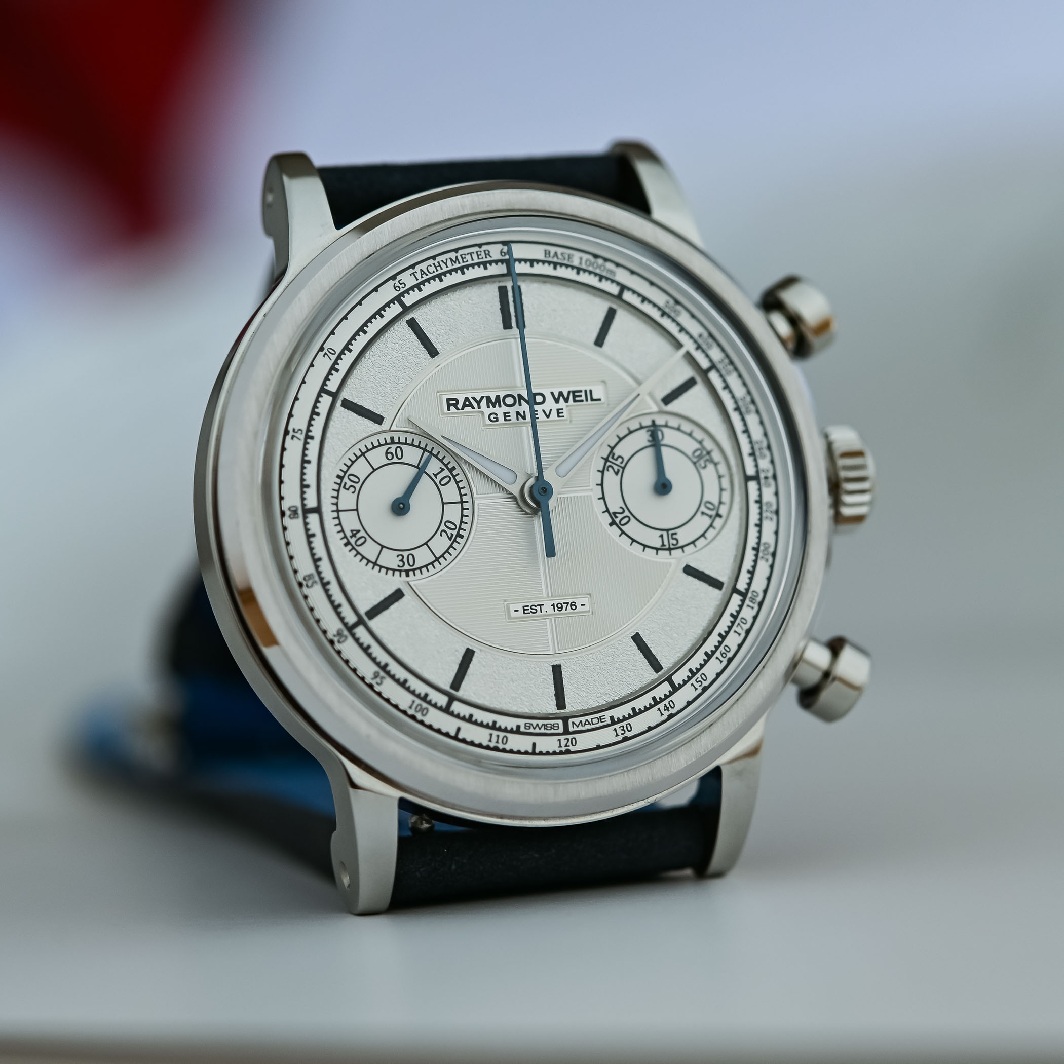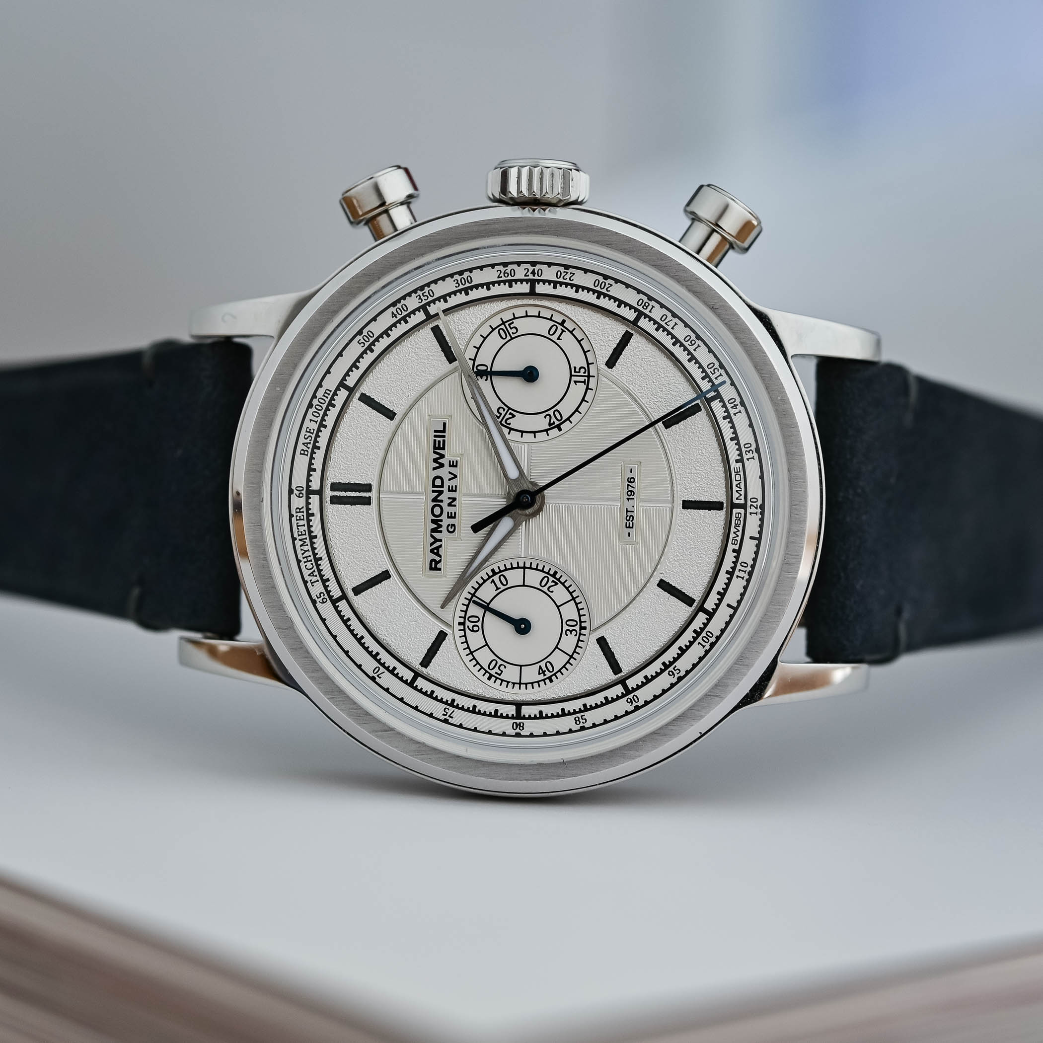 Celebrating its 50th anniversary in style, Raymond Weil releases a handsome chronograph powered by a restored Valjoux movement.