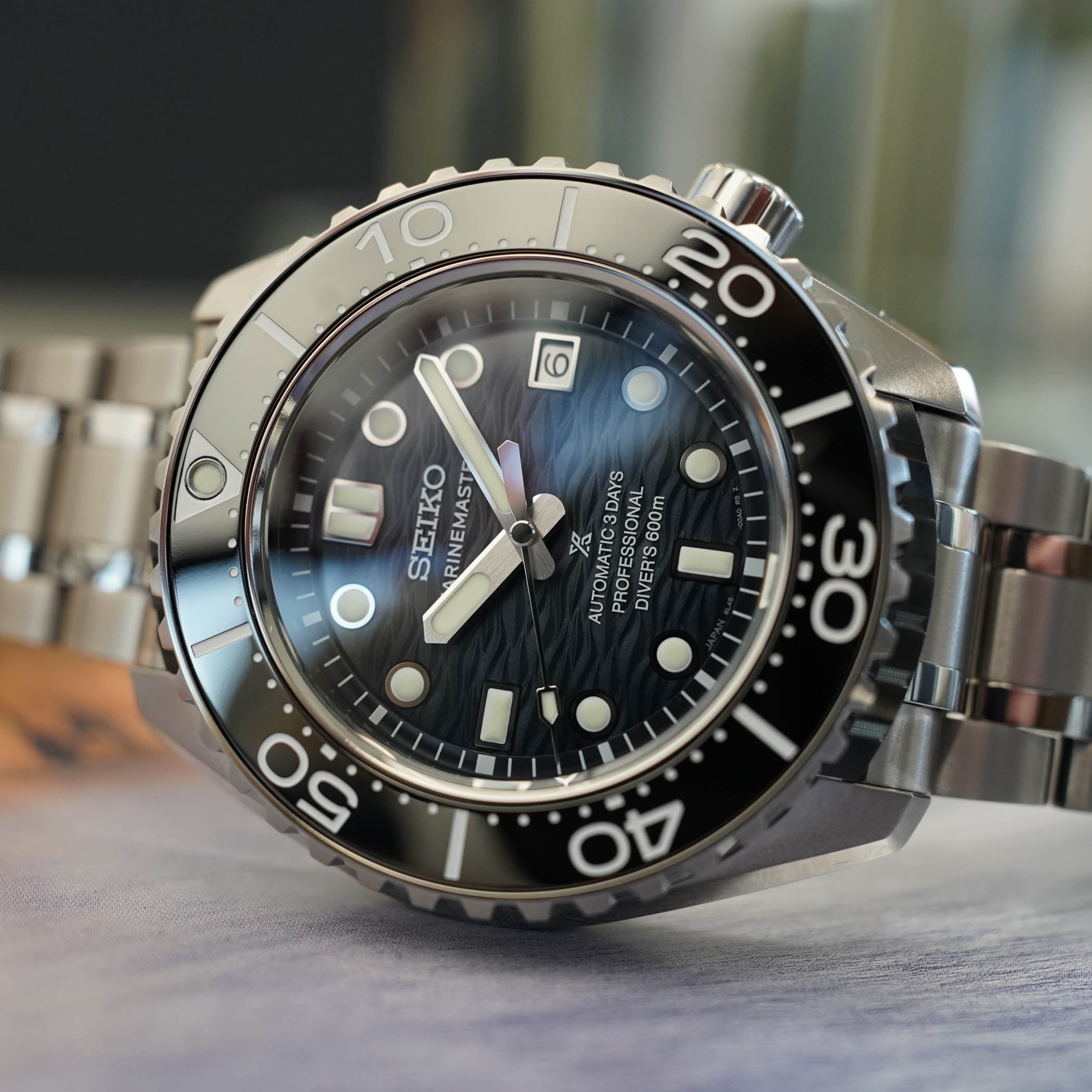 Seiko. Prospex. Diver. Three words that we often see combined. But not all Prospex Diver watches are born equal. With the Marinemaster Professional Titanium SLA081, Seiko brings one of its most advanced professional-grade dive watches. A true professional dive watch made for saturation diving, with huge dimensions, equipped with everything Seiko has up its sleeve, and priced at a point where it could almost become a Grand Seiko (well, it does have a GS-derived movement). This monobloc 600m diver has a complex construction that avoids the need for a HEV, but adds a bit of fanciness to the dial, with a gradient and textured effect. Clearly more adequate worn over a diving suit that paired with loafers…