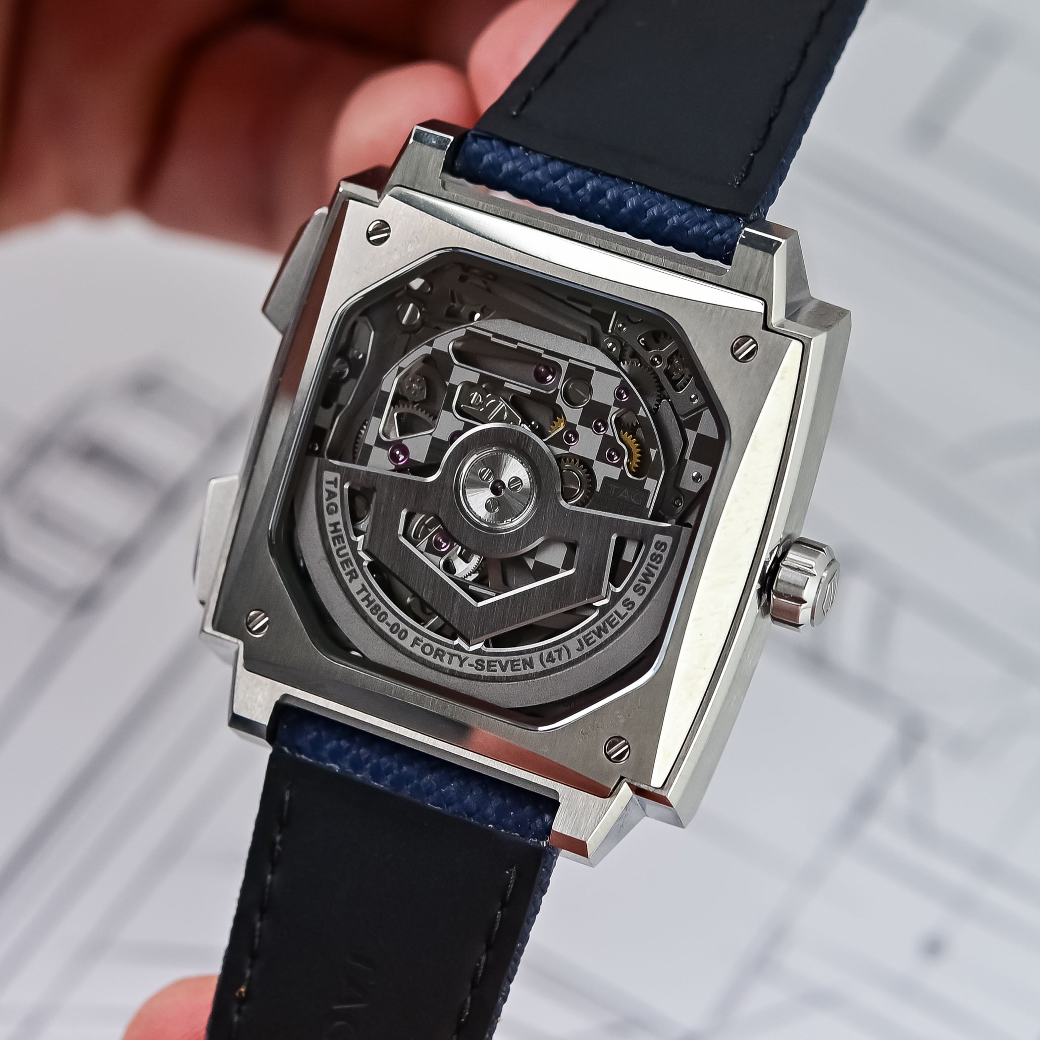 With the Monaco Evergraph, TAG Heuer has genuinely revolutionised the workings of the chronograph. The brand-new Calibre TH80-00 relies on the principle of compliant, flexible mechanisms to replace the traditional chronograph activation and resetting system that’s been in use for decades. Two of these mechanisms have been developed to deliver a new tactile action when using the chronograph, and we’ve explained all about it in the video we released earlier this week. In the process, the Monaco Evergraph adopts the technical look of the Split Seconds Chronograph version from last year, with a titanium case, partially openworked dial construction, and a restyled, more ergonomic exterior in full titanium. Yet it’s reassuringly Monaco, thank heavens!