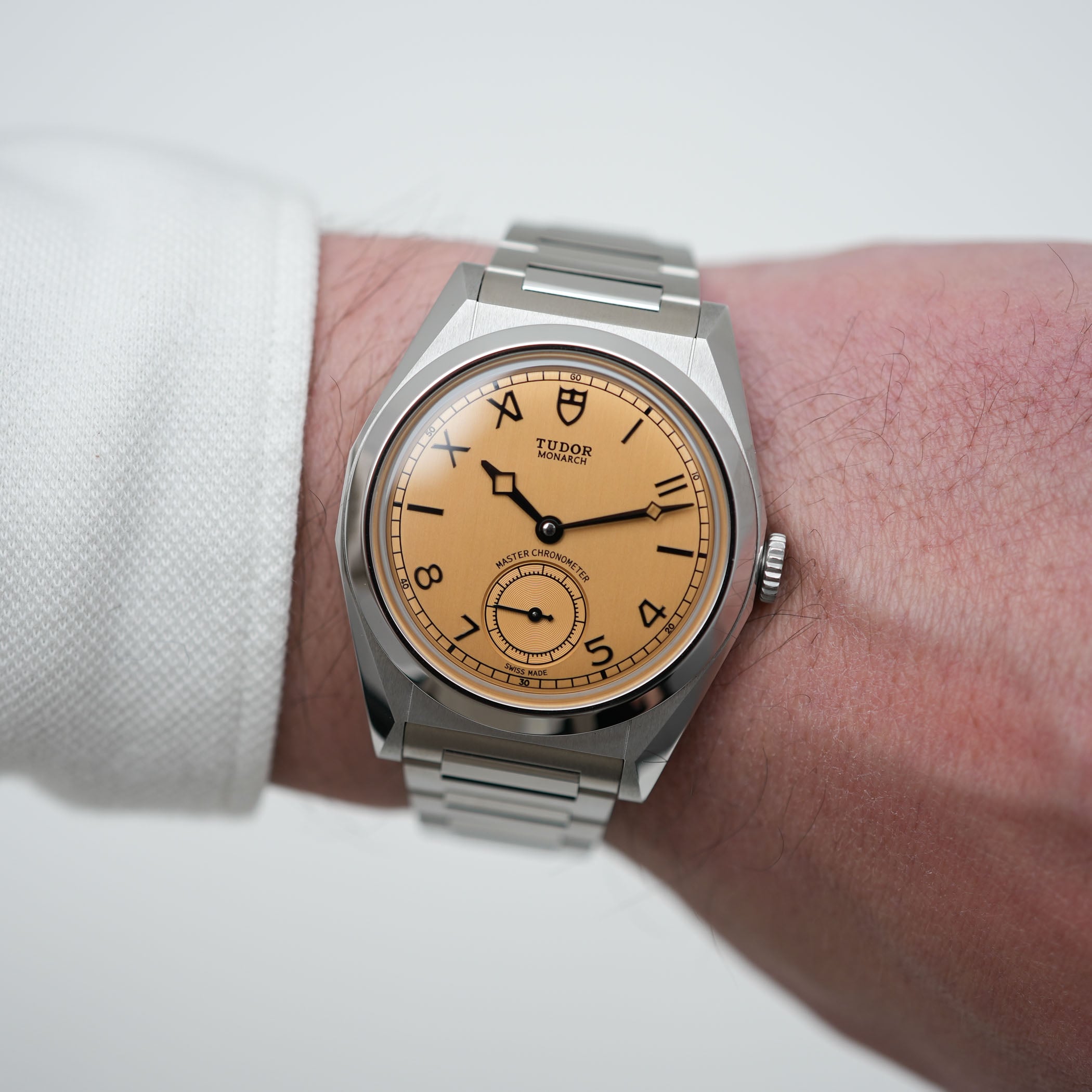 One of the best surprises we’ve seen during Watches & Wonders this year came from Tudor, which celebrated its 100th anniversary with the brand-new Monarch. It’s modelled after historic watches from the 1930s and 1940s, and comes with a 39mm wide faceted case in stainless steel, with a dark champagne coloured dial that shows a mix of Roman and Arabic numerals. The hands are especially intriguing, showing a new take on the classical Snowflake-style hands. The caseback reveals the in-house automatic Calibre MT5662-2U, which is both COSC and METAS certified. The stainless steel bracelet has H-shaped outer links with faceted inner links, that alternatite in finishing, and it features Tudor’s practical T-Fit clasp. Not bad, Tudor, not bad at all!