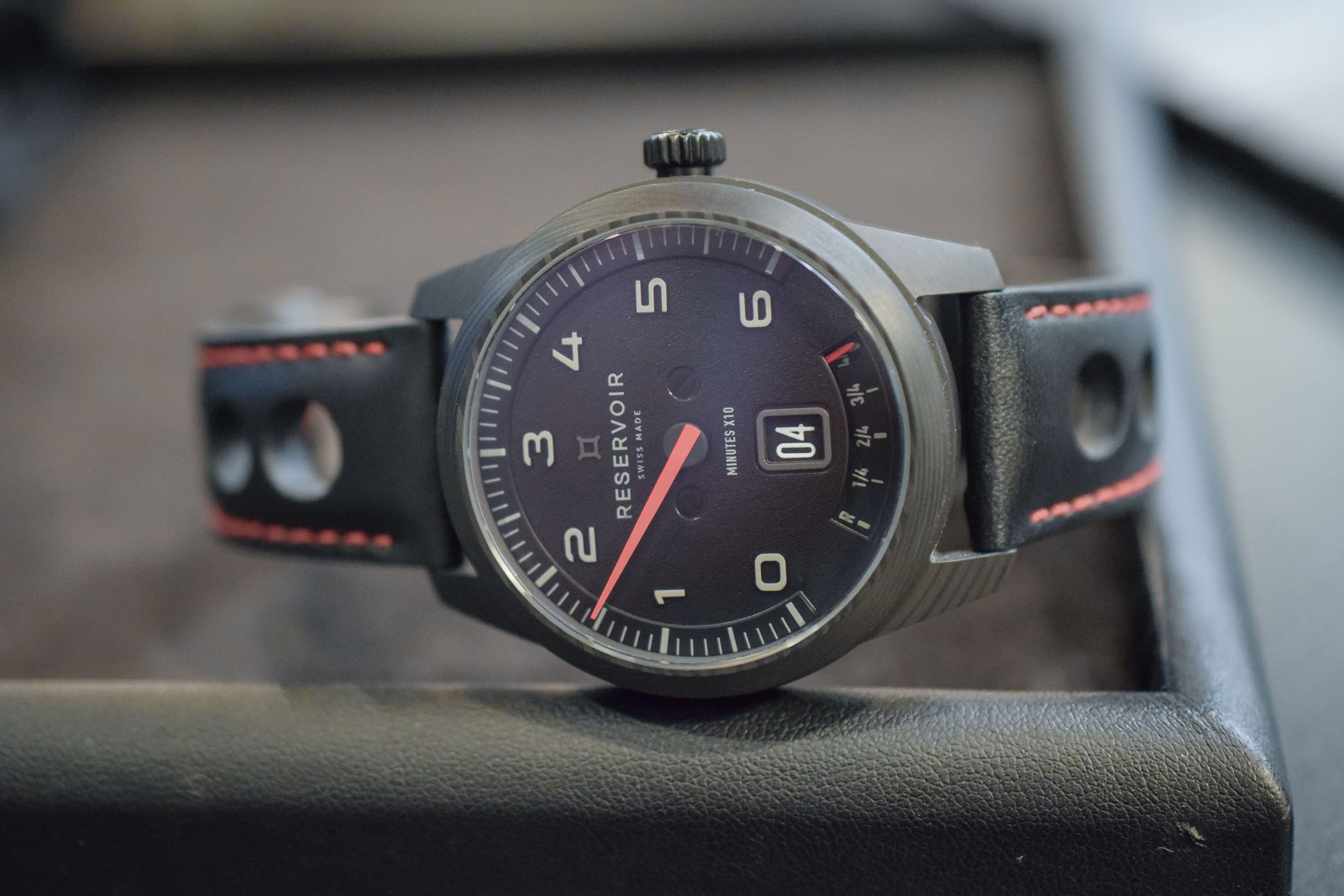 The unusual yet functional way to display time on Reservoir Watches combines jumping hours and retrograde minutes. An aperture between 5 and 7 o’clock displays the power reserve, just like an old fuel or oil gauge. All of that clearly takes inspiration from dashboard instruments found on modern supercars or vintage classic cars (depending on the collection). The engine under the bonnet is based on the reliable ETA 2824 coupled with a sophisticated proprietary module. The latter comprises no fewer than 124 parts. It is developed and manufactured by Telos in La Chaux-de-Fonds (for more information, read our introductory article here).