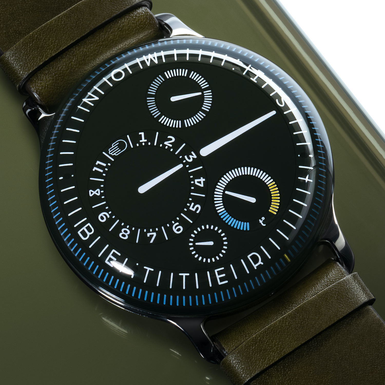 Like previous Type 3 watches, the protagonist is the impressive domed sapphire crystal that rises up to protect the kinetic dial and gives the watch its smooth, pebble-like appeal. With practically no external case elements, the sleek and pure design aesthetics are enhanced by the absence of a crown. By rotating the caseback in one direction, you can wind the watch, in the other direction, the time can be set.