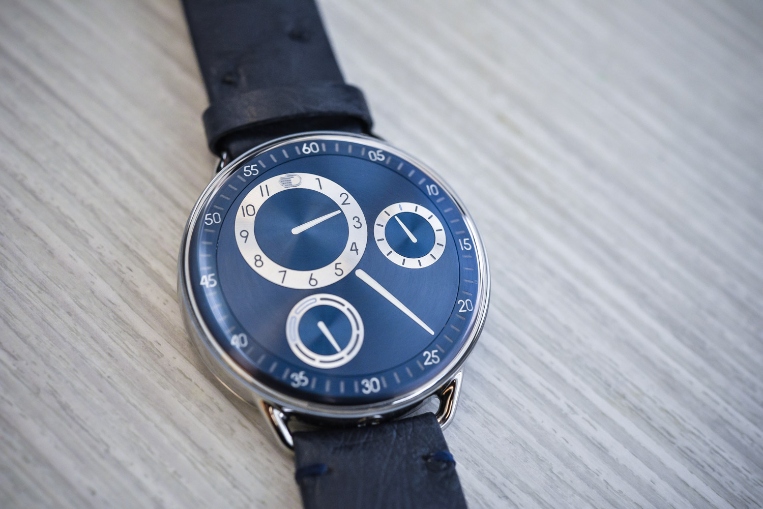 As I mentioned, this exclusive collaboration features not one but two Ressence timepieces, both of which you can only get online at mrporter.com. The first is the Ressence Type 1 PN MRP, which is offered in a 42mm polished titanium case and paired with a gorgeous Night Blue metallic dial with 3 satellites in contrasting silver. The watch indicates the seconds, minutes, hours and week days using a patented time display system composed of orbiting single surface discs and rings, which are collectively known as ROCS (the Ressence Orbital Convex System). This in turn is powered by the minute axle of a customised 2824/2 base calibre. It is paired with a 20mm leather strap with ardillon buckle and will be limited to just 12 pieces, each of which is numbered on the specially engraved caseback.