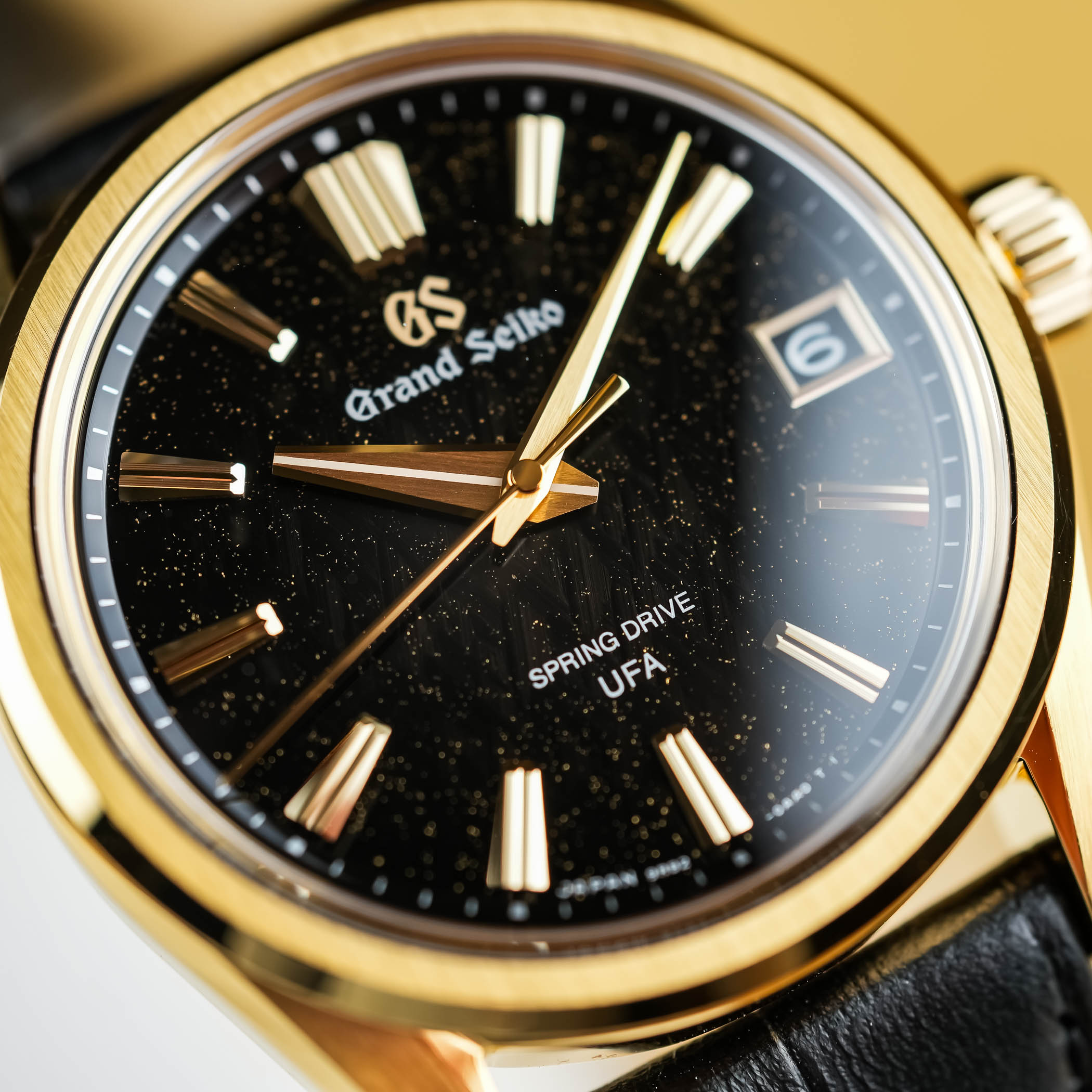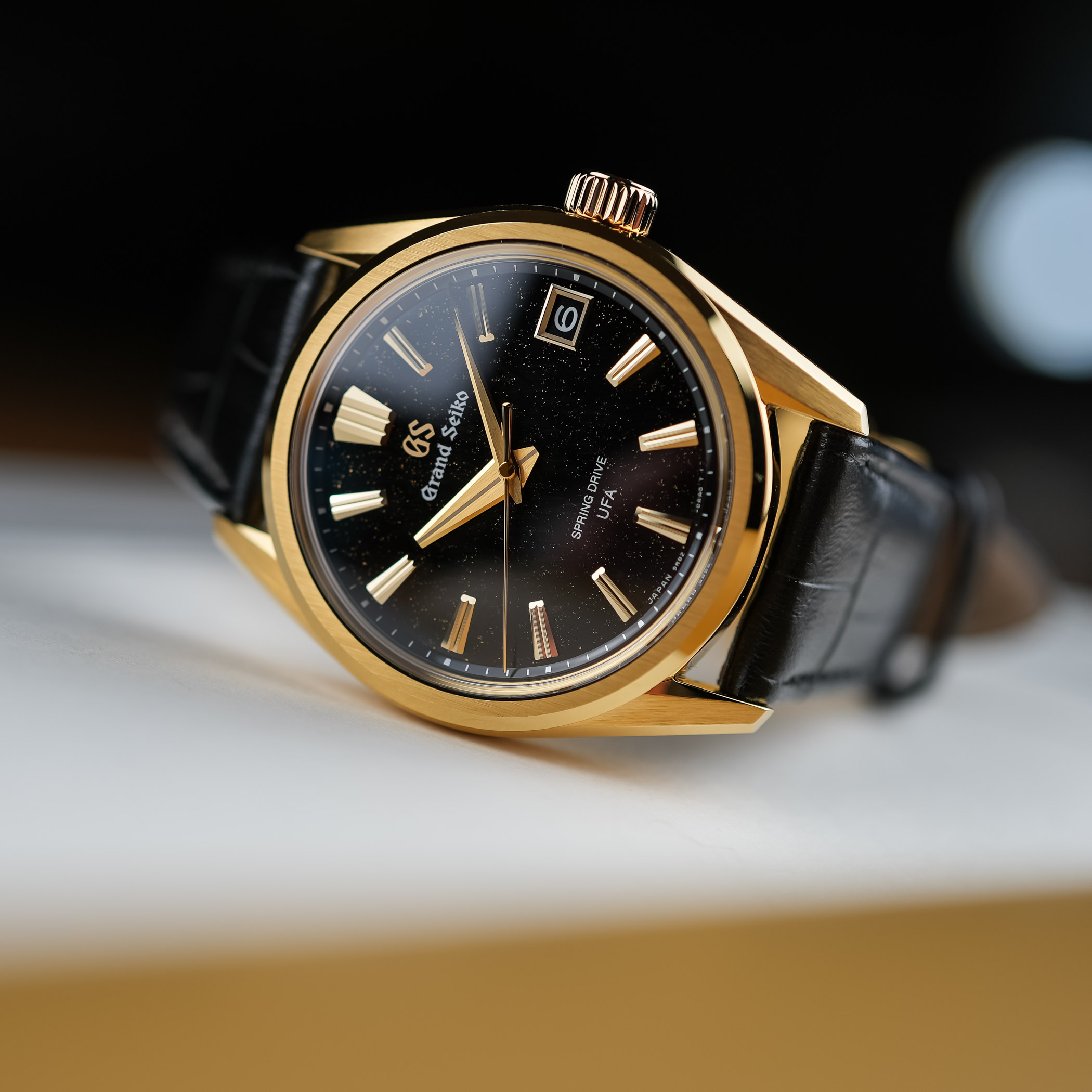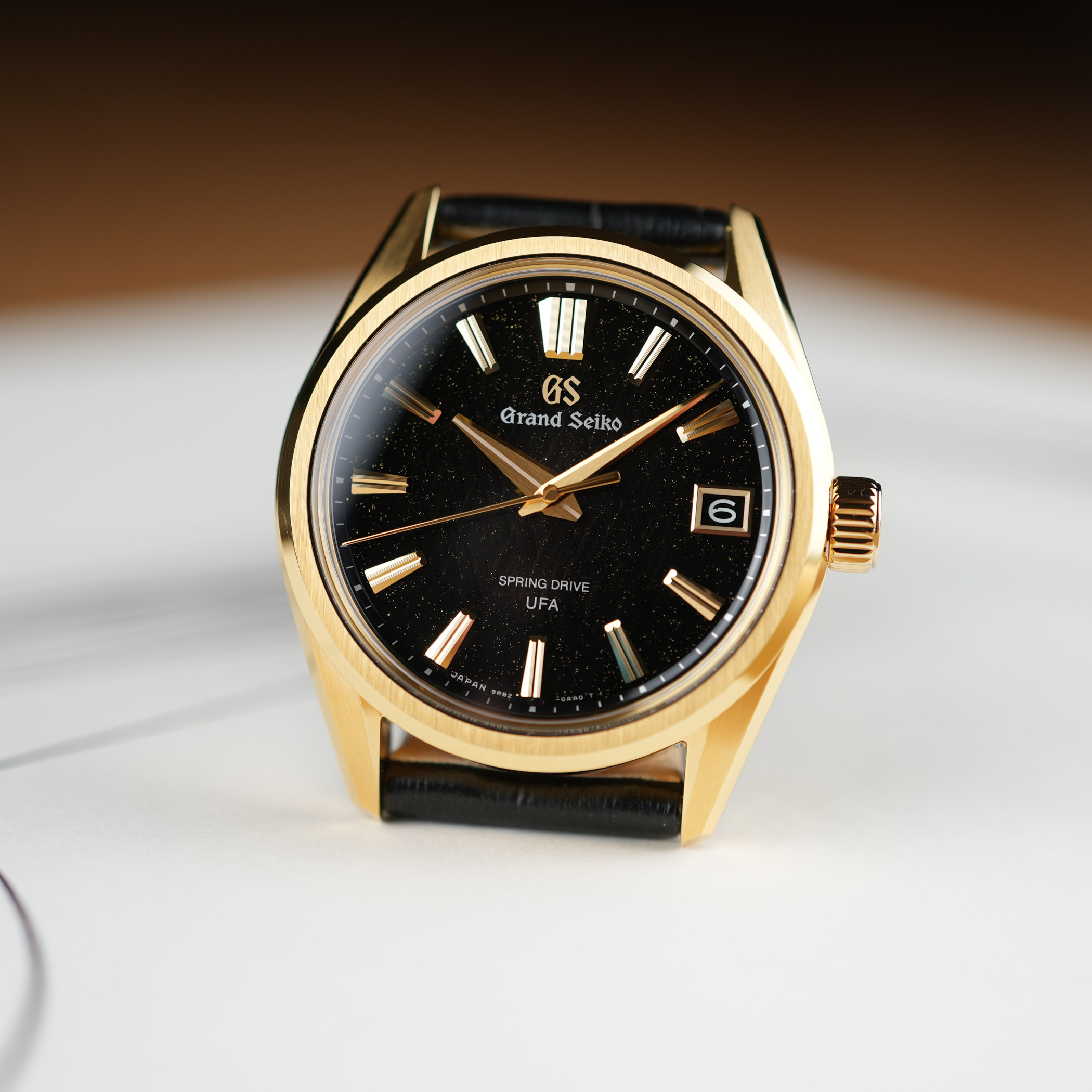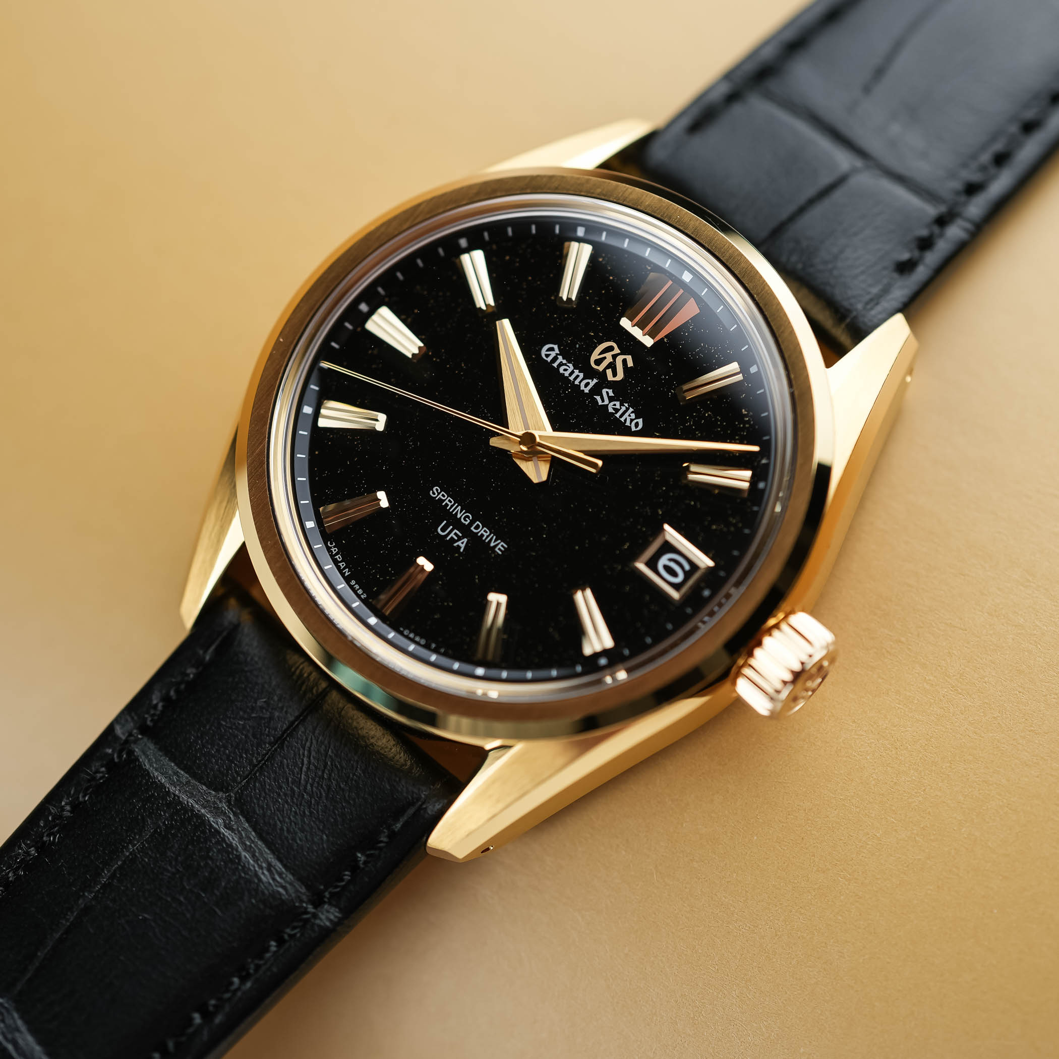 This brings us to the second key acronym that made headlines last year. U.F.A., which stands for Ultra Fine Accuracy, refers to its new-generation Calibre 9RB2, with its unprecedented ±20 seconds per year (±3 seconds per month) accuracy. A first for the Evolution 9 collection, the 37mm case is crafted in 18k yellow gold and finished in accordance with the collection’s design mandates. Fitted with a box-shaped sapphire crystal, a screwed caseback with a see-through sapphire, and a comfortable 100m water resistance, the case has a reasonable 11.4mm thickness, which translates to dress watch territory at Grand Seiko.