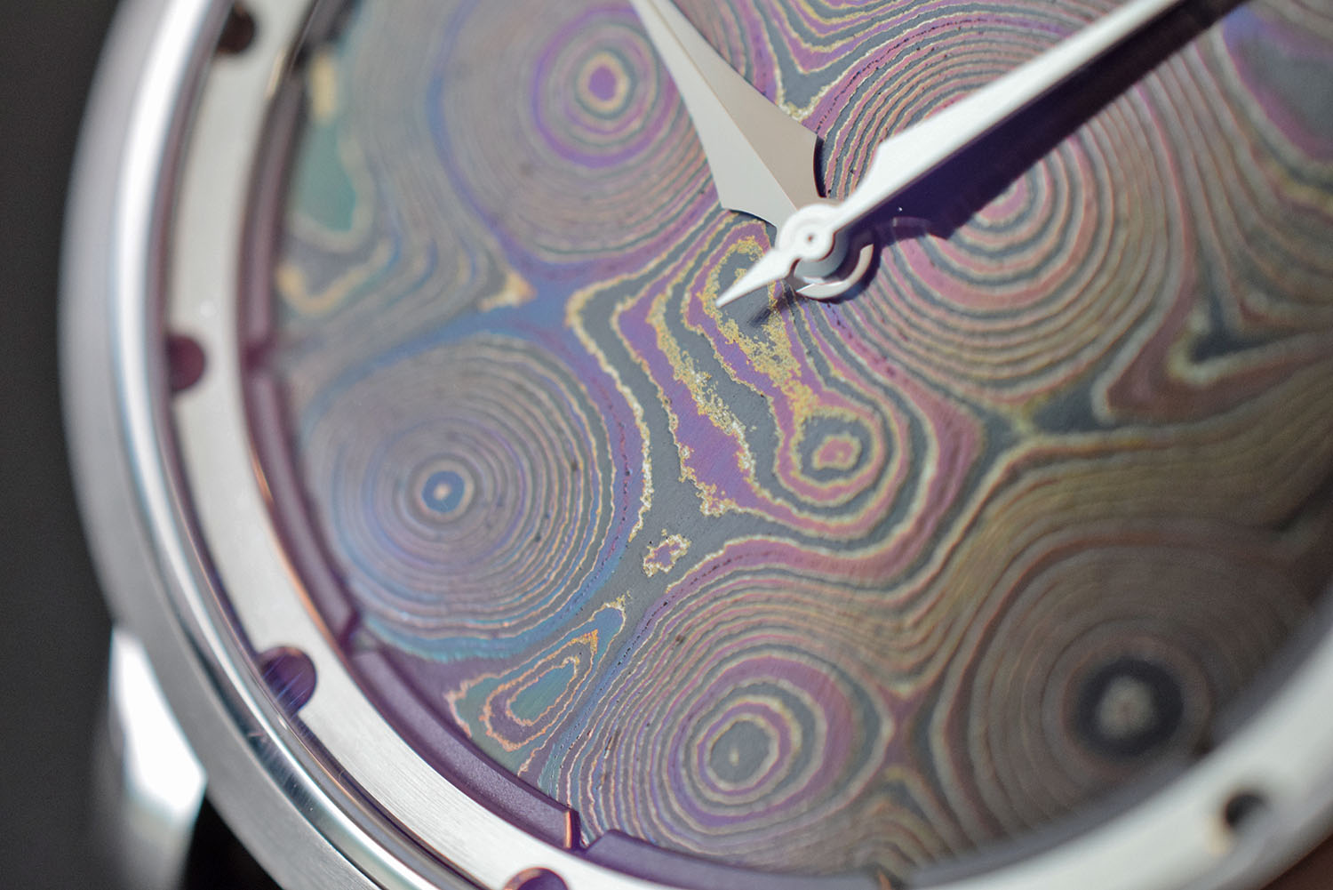 This new Sarek collection was introduced as a prototype during Baselworld 2016 and the first watches were delivered by the end of the year. It is equipped with the largest Damascus steel dial ever created by GoS, which thankfully does not mean the Sarek has gargantuan proportions. The dial is just larger than they have produced before, allowing for more detail, while the bezel is somewhat slimmer to allow more of the dial to be seen. The color and patterns of the Sarek dials are inspired by the Sarek National Park in Swedish Lapland, and mimicked with a wildflower pattern consisting of 164 layers of steel forged into an ingot. This huge valley is considered to be one of the largest, last remaining true areas of wilderness in Europe, with over 100 glaciers, some of the highest mountain peaks in the country, fast flowing mountain rivers and the largest species of Moose in Europe (the Älg, for the fact-hunters!). The color of the dial is, as I imagine it anyway, a depiction of the various stages of sunlight running across the valley, and reflecting off of the water, mountains, forests and whatnot, during the day. I can just imagine sitting on top of one of the peaks after an adventurous day of hiking, gazing across the valley, watching the sun set on the horizon and seeing this place bursting with life and color.