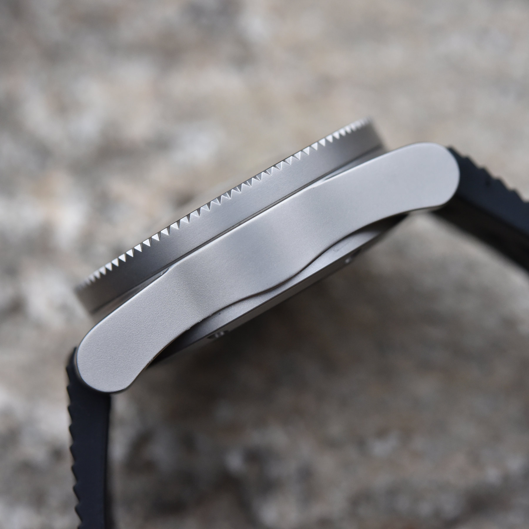 Starting with its exterior, the Hydrium California has a case that stands out from the masses. Sure, there will be similarities here and there, perhaps, but that’s pretty much a given within the dive watch segment. You need certain features in order to make it a proper diver, and Isotope follows suit. Nevertheless, the look and feel are very nice, with a micro-blasted matte finish for the 40mm by 14.9mm stainless steel case.