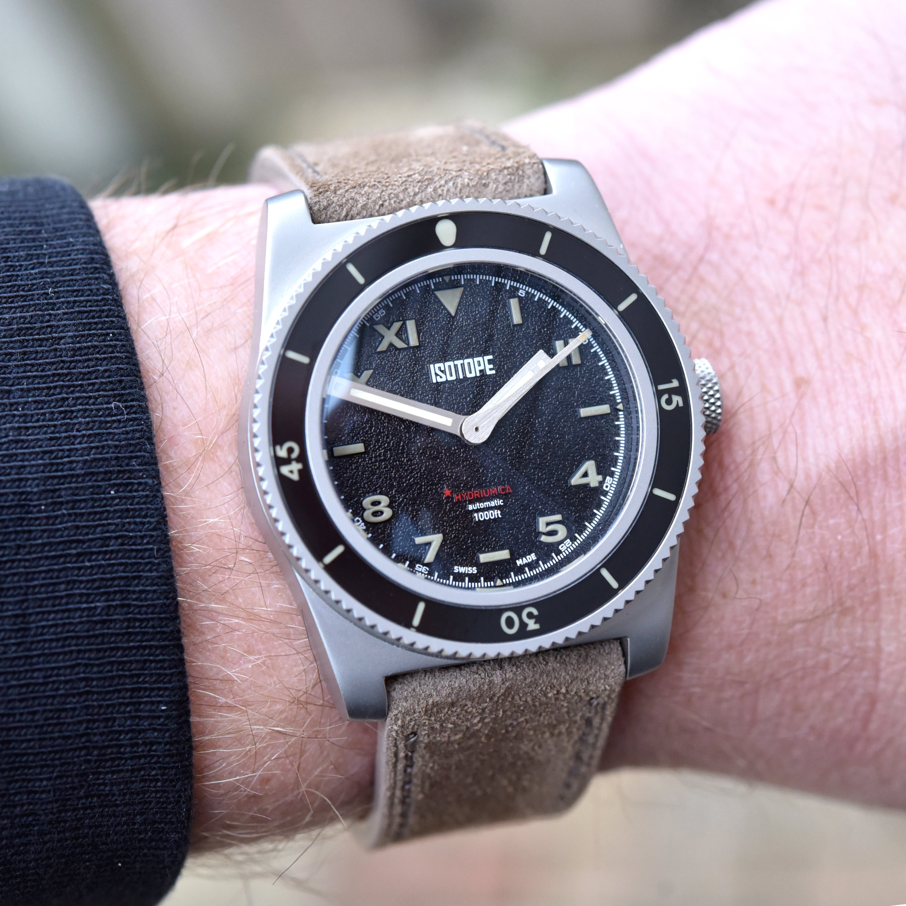 Isotope supplies the Hydrium California with a black tropic-style FKM rubber strap as standard, but at a small premium, you can opt for the tan suede leather strap instead. And if you’re really looking to splurge, you can have both. Speaking of which, the base price for the Hydrium California L.E., which is limited to 200 pieces, is GBP 900. This equates to just over EUR 1,000 before taxes. This goes up depending on the strap options you have selected. Both straps, plus additional colours and styles, are also sold separately, so you don’t have to make a decision right away.